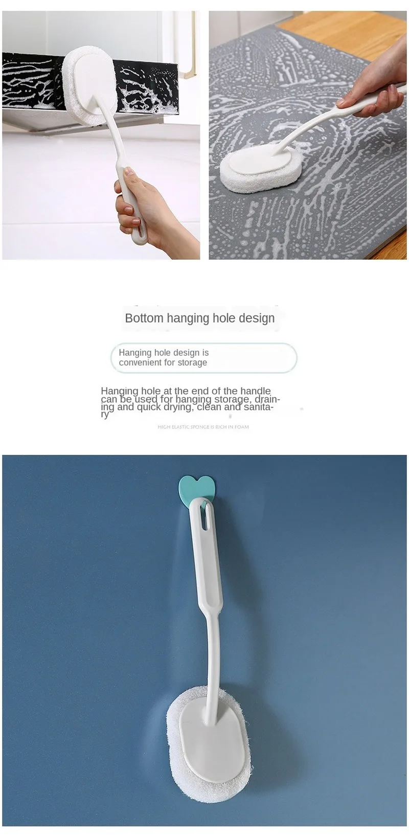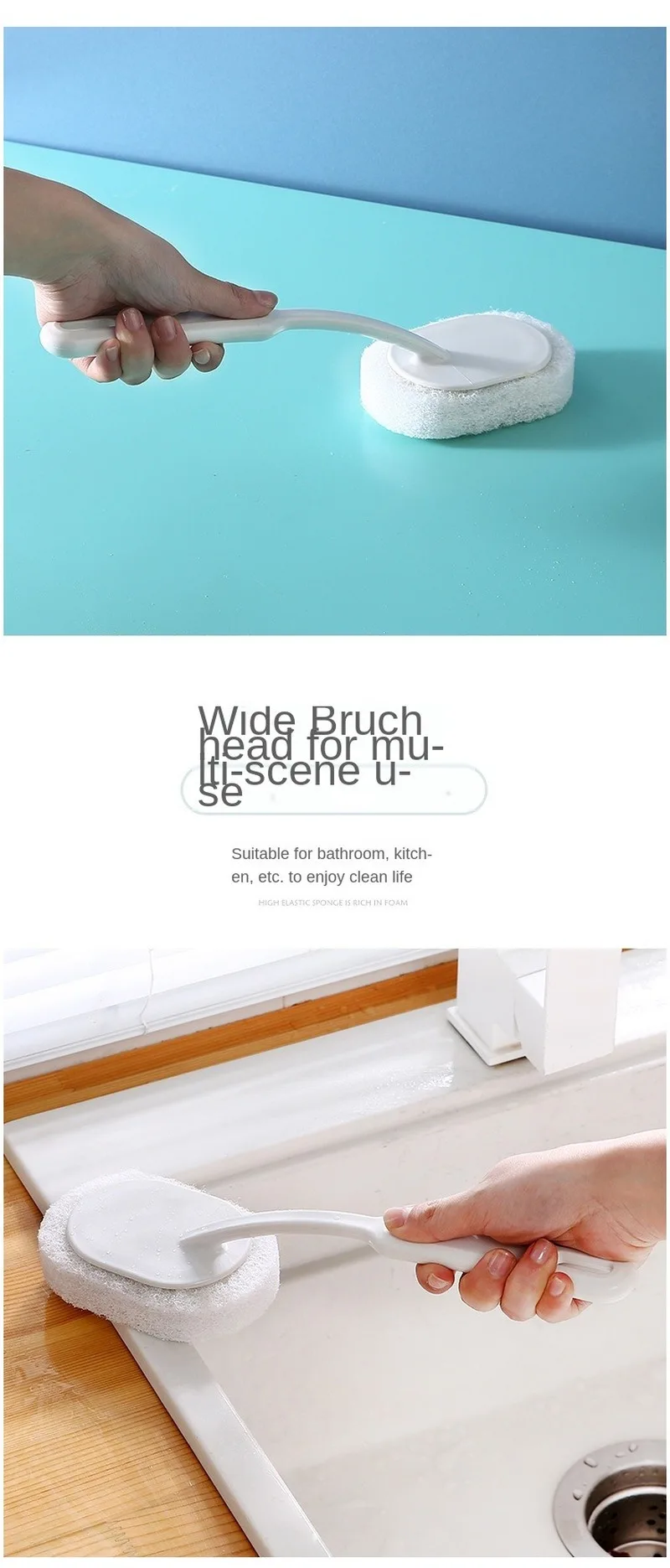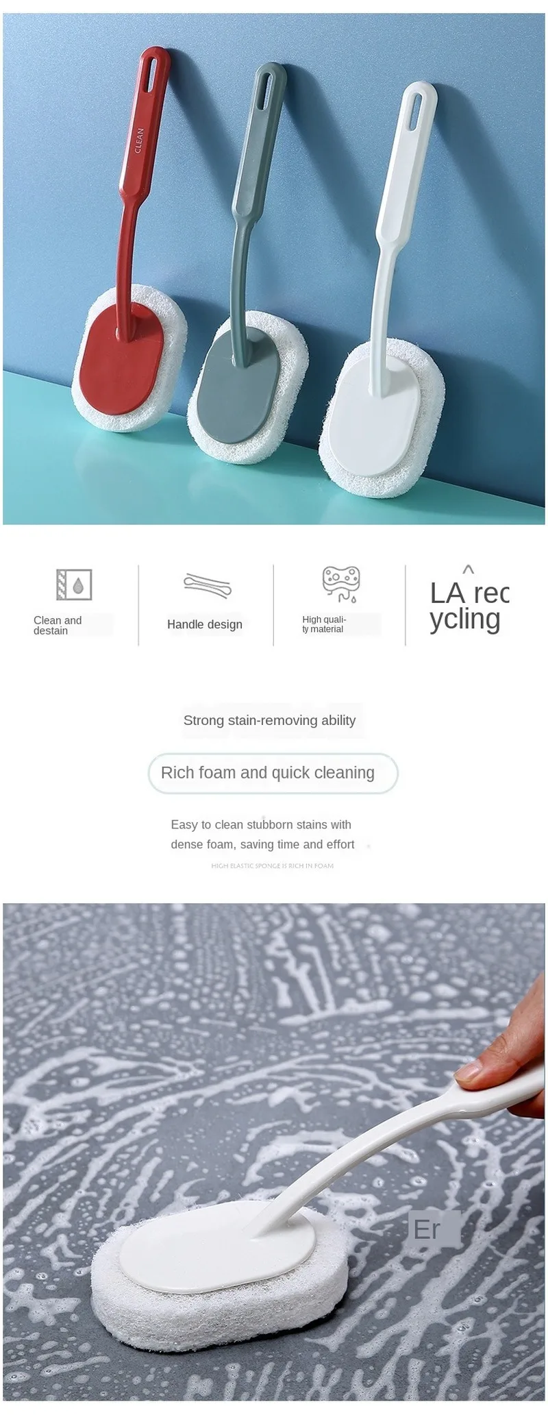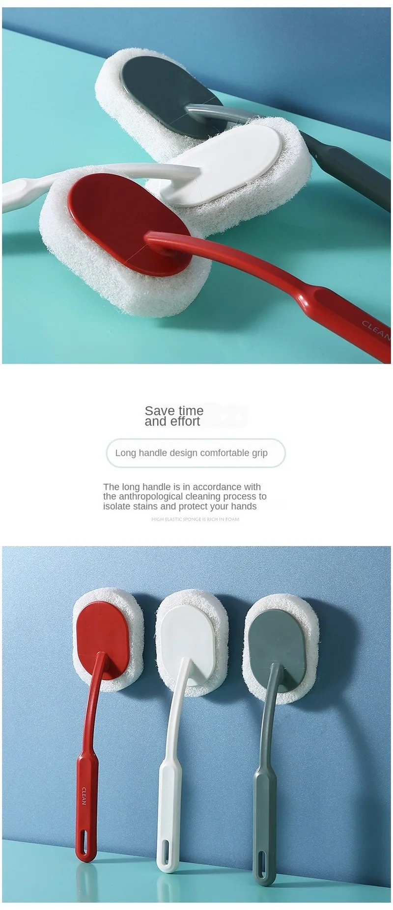 Long Handle Bathtub Cleaning Brush Bathroom Wall Floor Sponge Wipe Brush Home Clean Tools Accessories Best Selling Products