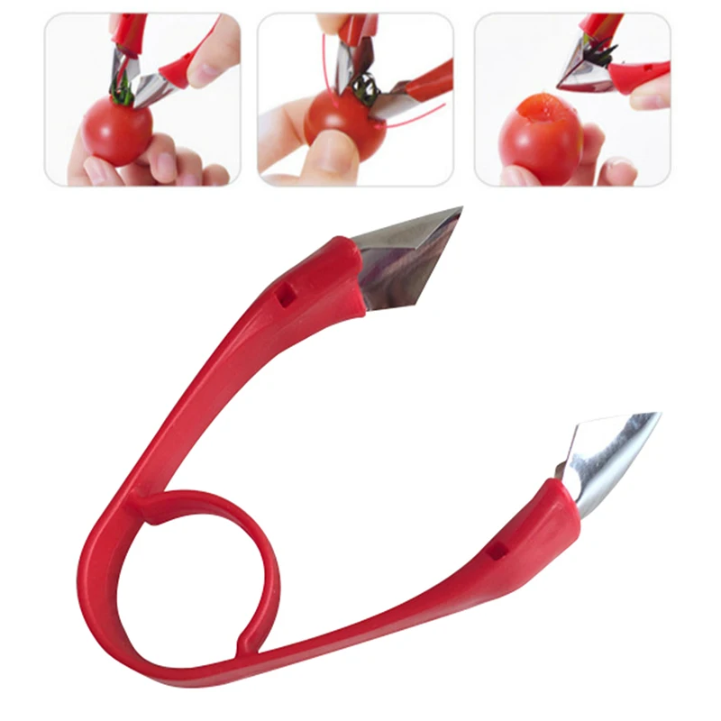 The unique design can easily peel off the skin of strawberries or tomatoes.
