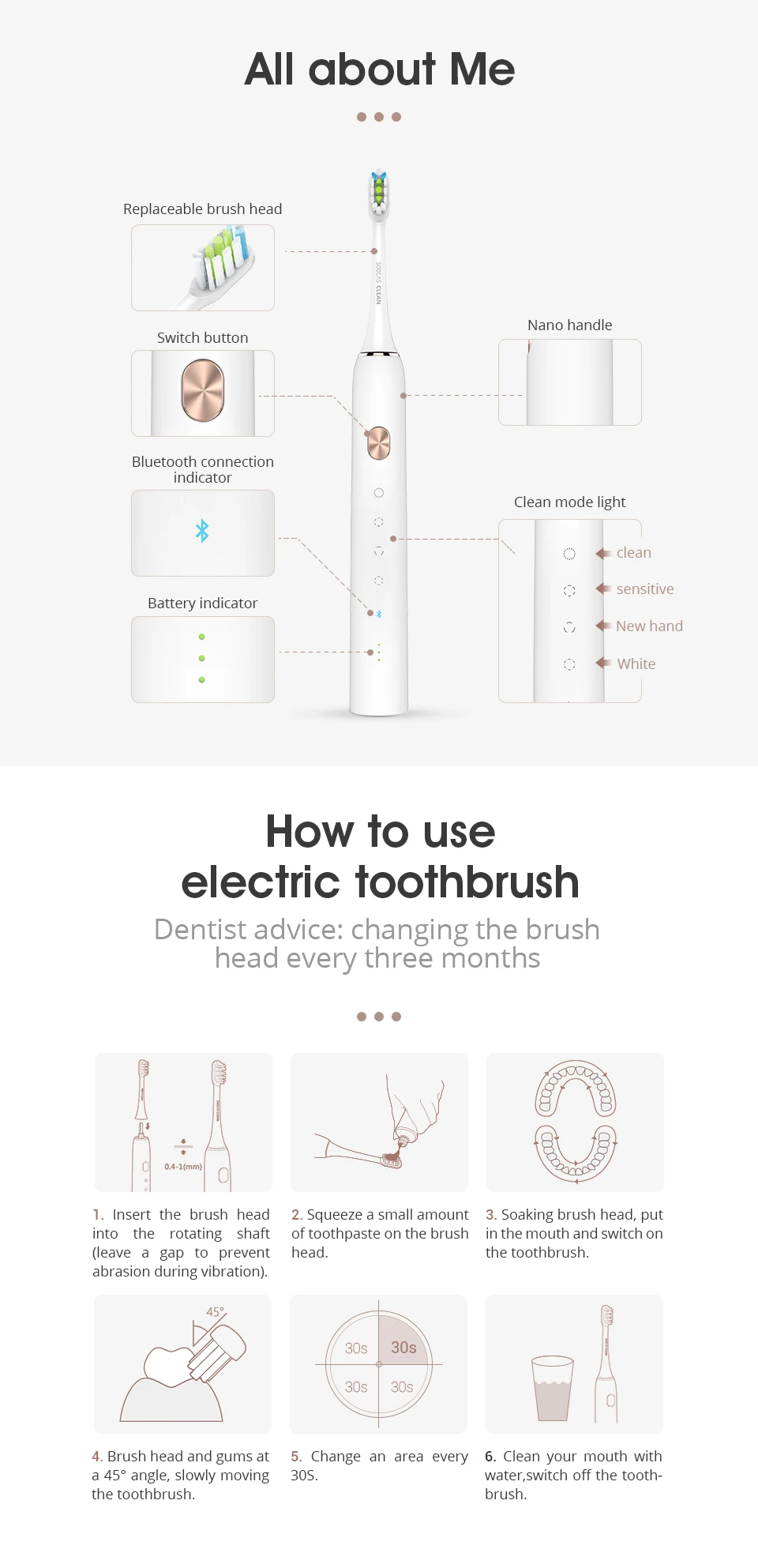 4 modes – clean / sensitive / new hand / whitening |