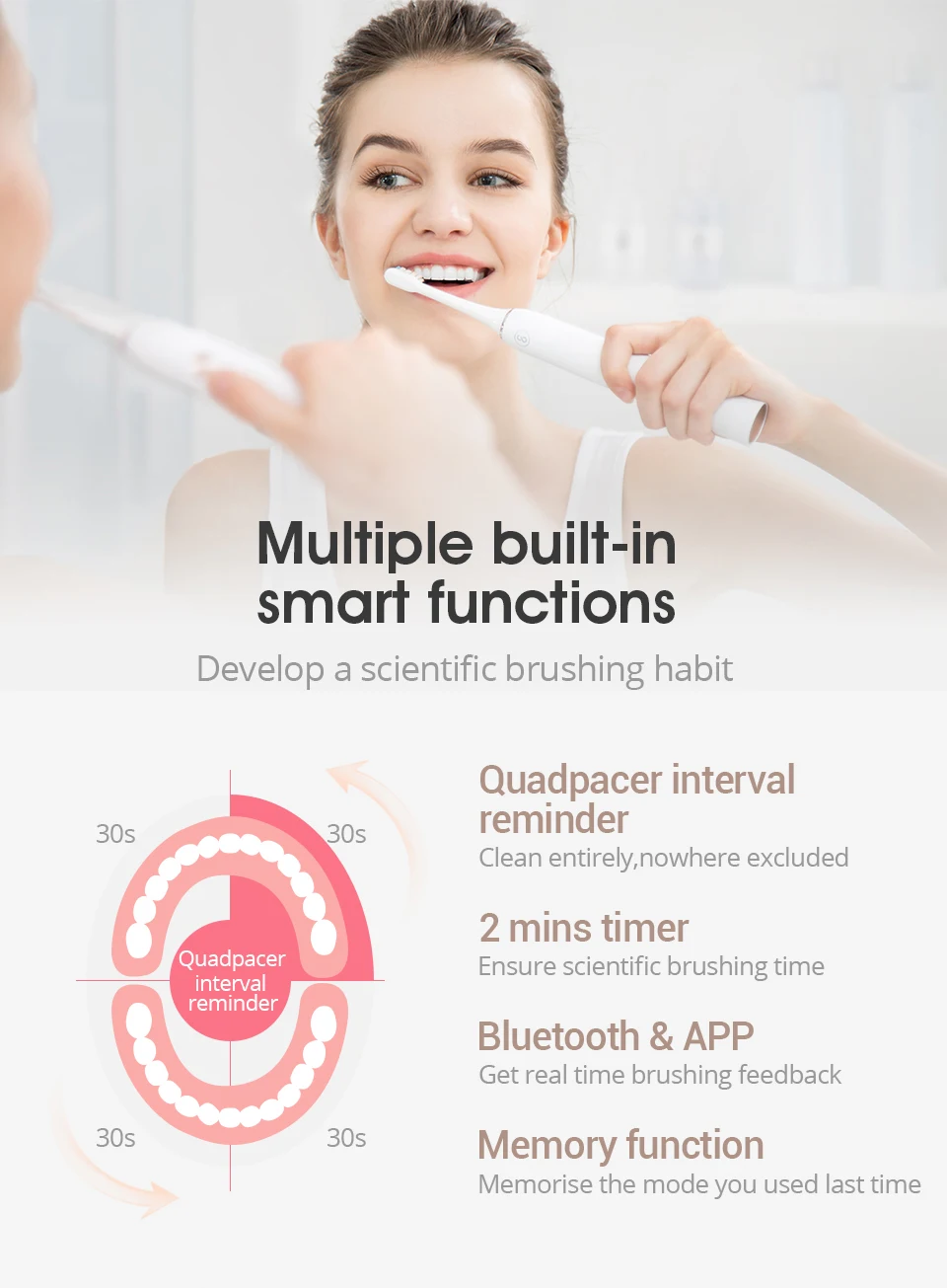 2 mins timer / 30 secs interval / Bluetooth & APP / memory function |