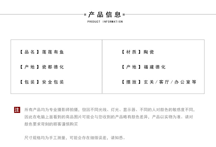 Lotus has fish fragrance Size: 11*10.9CM Material: Ceramic Packing boxes