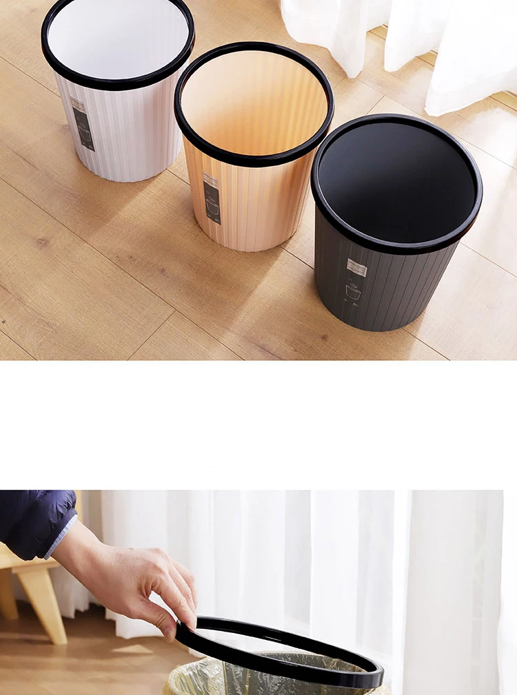 this is a nordic Style Creative Simple Trash Can Household Without cover Wastebasket Kitchen Bathroom Living Room Striped Trash Can