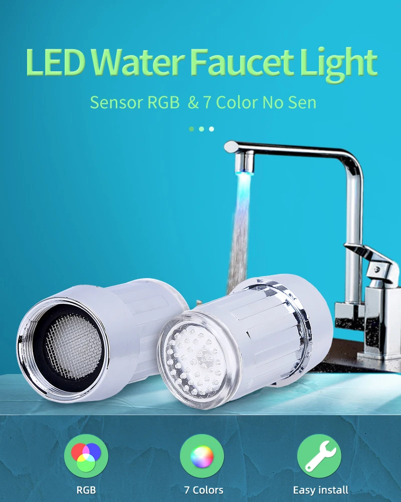 LED Water Faucet Accessories Glow Colorful Tap Nozzle For Bathroom Kitchen Head Light 3 Colors 7 Colors