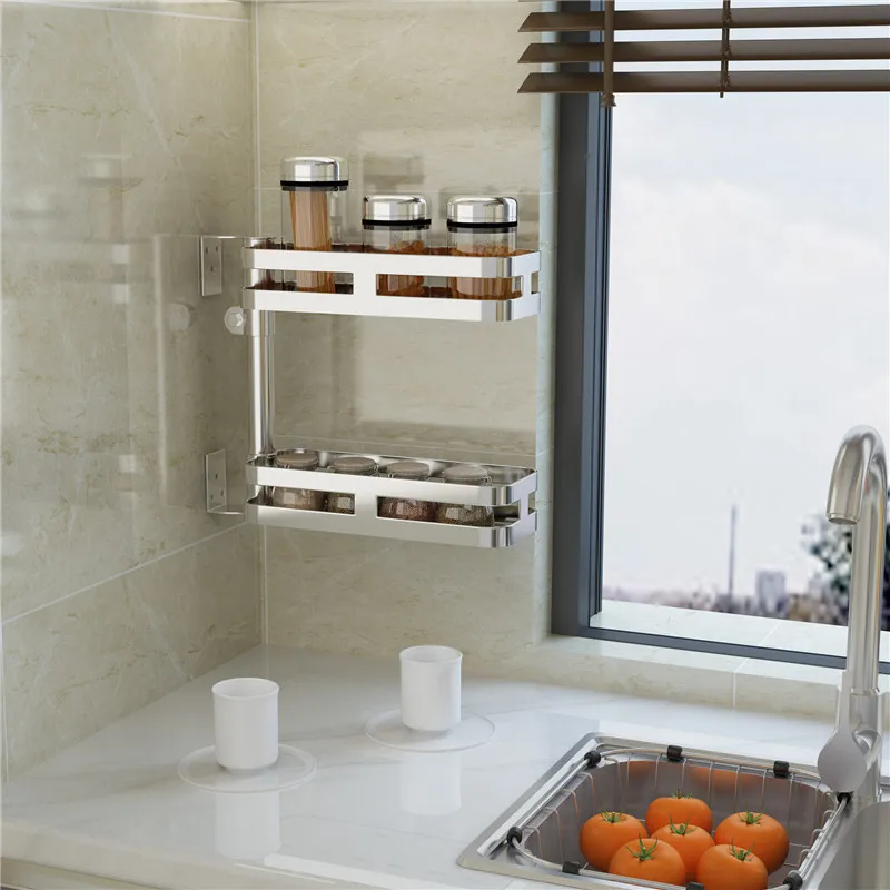 Mrosaa Movable Corner Shelf 2/3 Tiers Kitchen Bathroom Shelves 304 Stainless Steel Double Layers Corner Storage Holder Rack