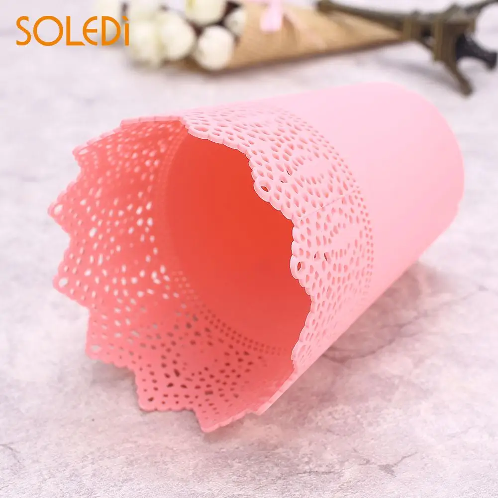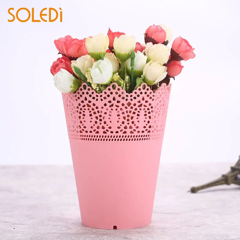 Flower Vase Pink/White/Blue/Purple Economic Pen Container Storage Holder Plastic Flower Pots Lace Plant Vase Pot