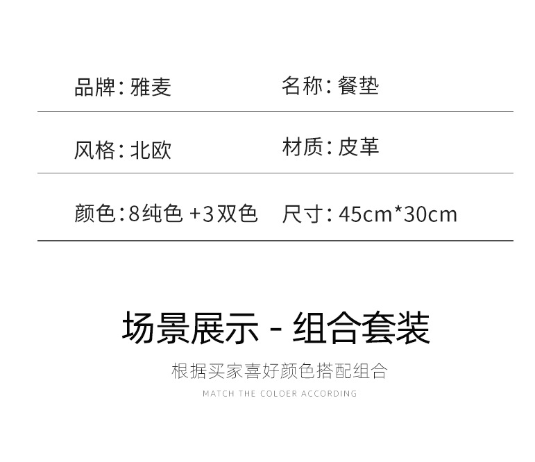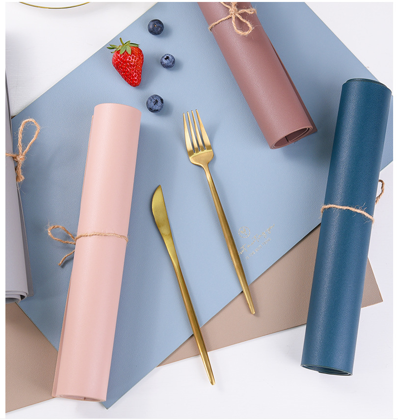 Wind insulation pad table mat Size: 45*30 Material: leather Packing: OPP bag Color: mixed color