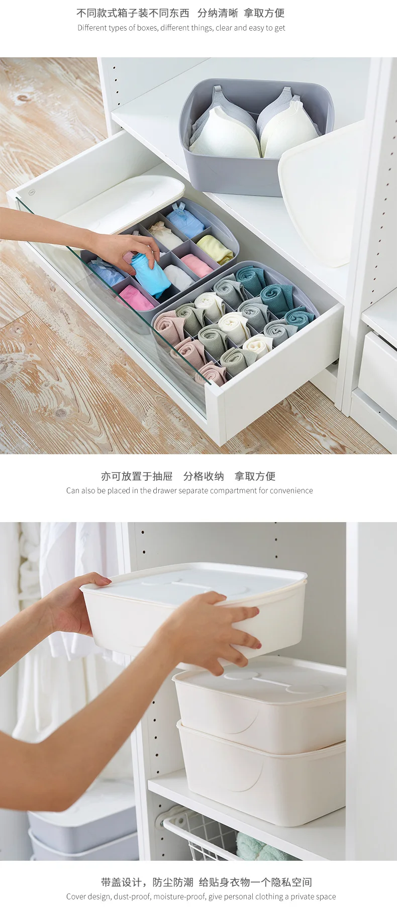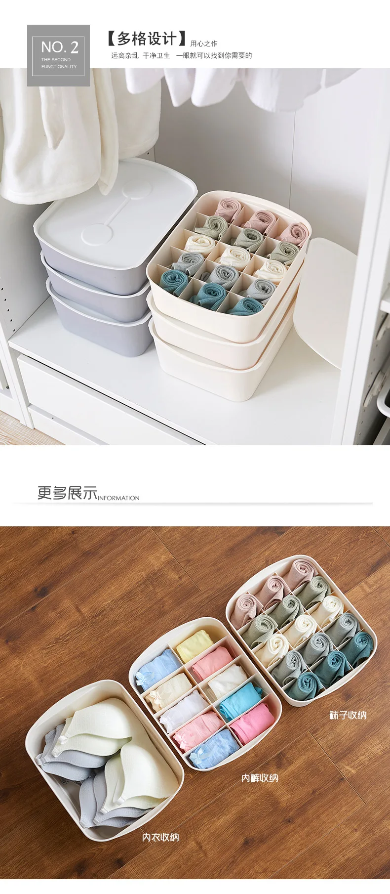 Simple Wardrobe Can Be Superimposed with Lid Multi-compartment Underwear and Underwear Storage Box Household Socks Organize Box