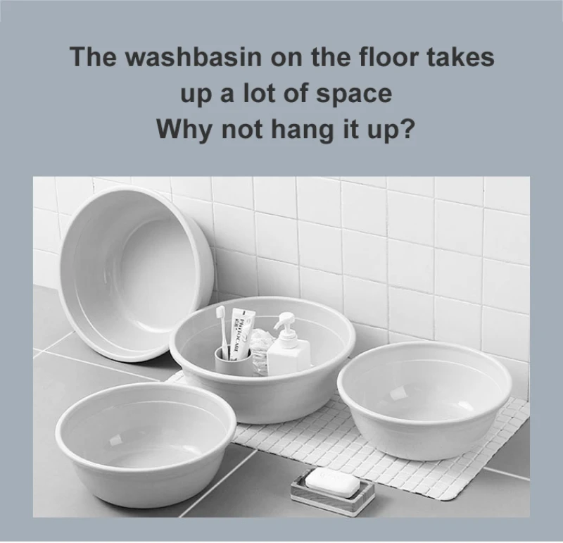 2.Can store 3-4 washbasins at the same time, the storage does not occupy the space, and the baby’s bathtub can be hung。