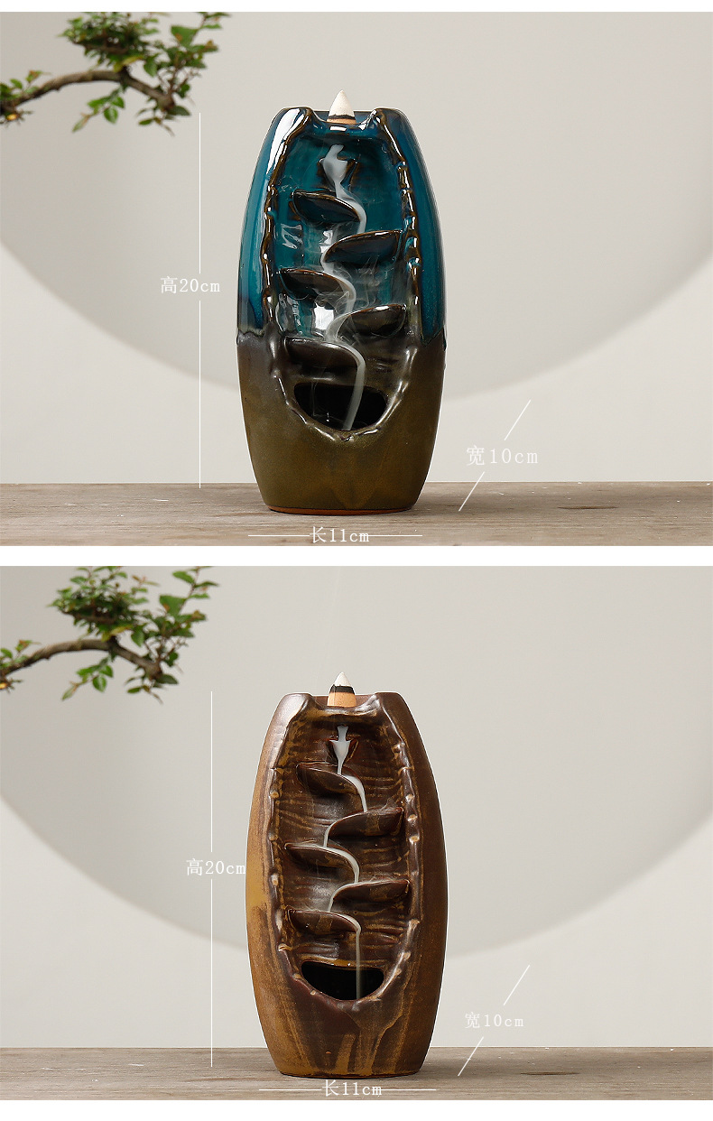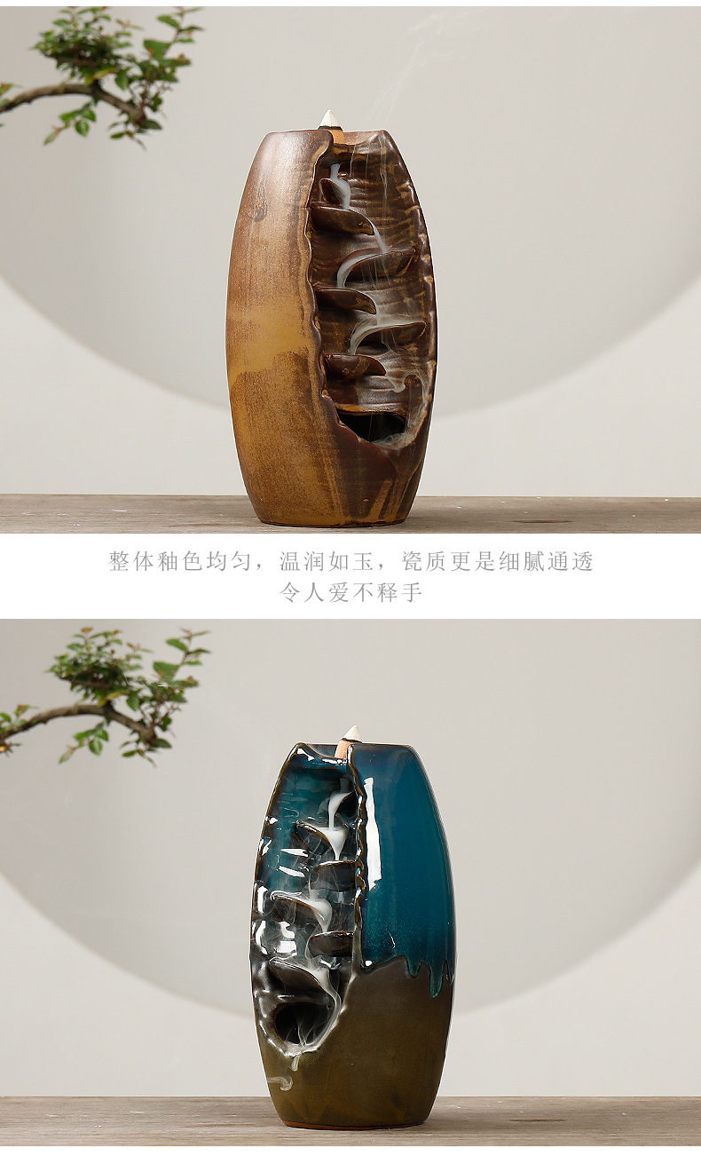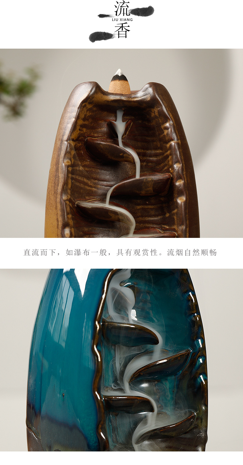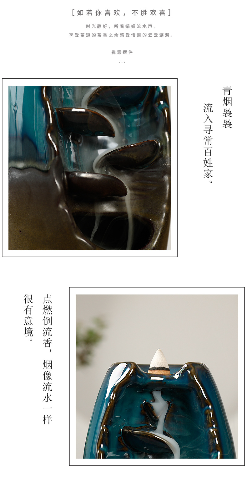 Backflow incense device Size: 20*11*10CM Material: glazed pottery Packing: Kraft paper box
