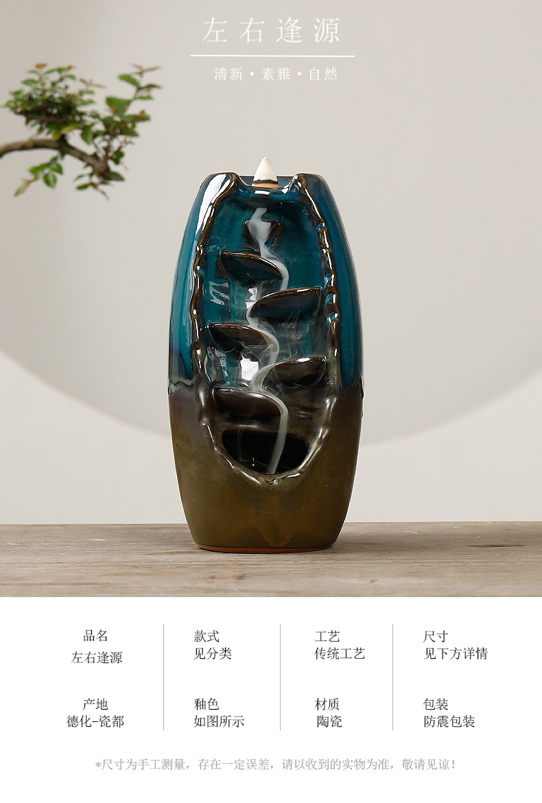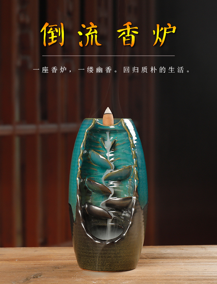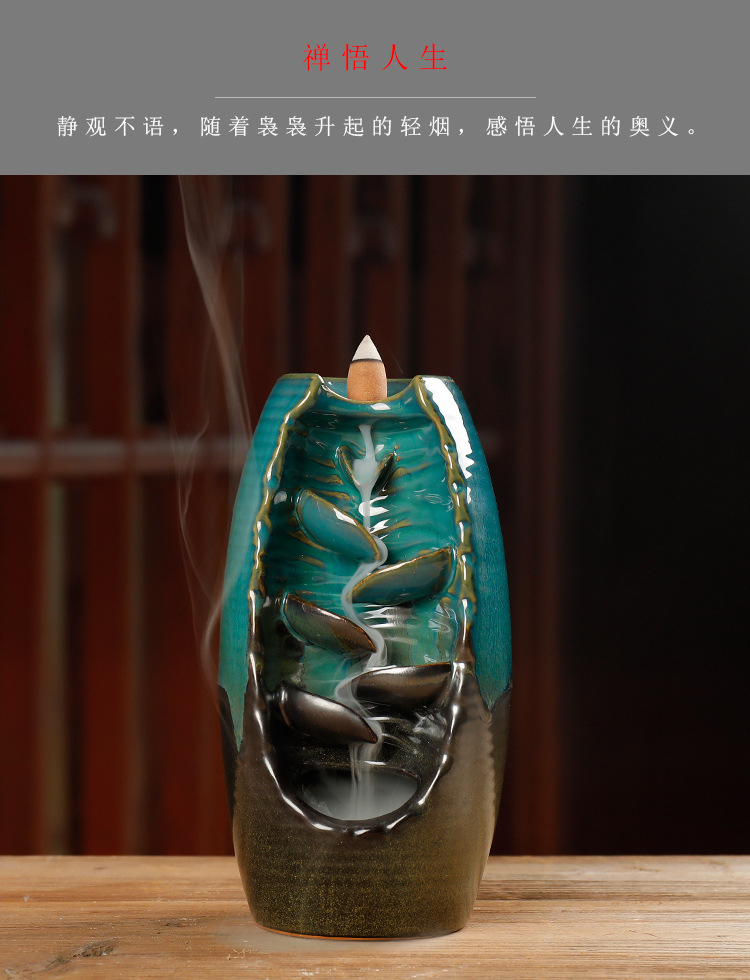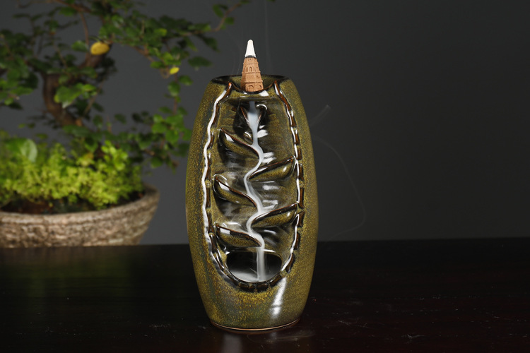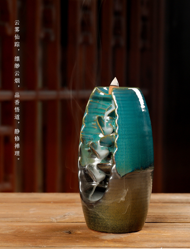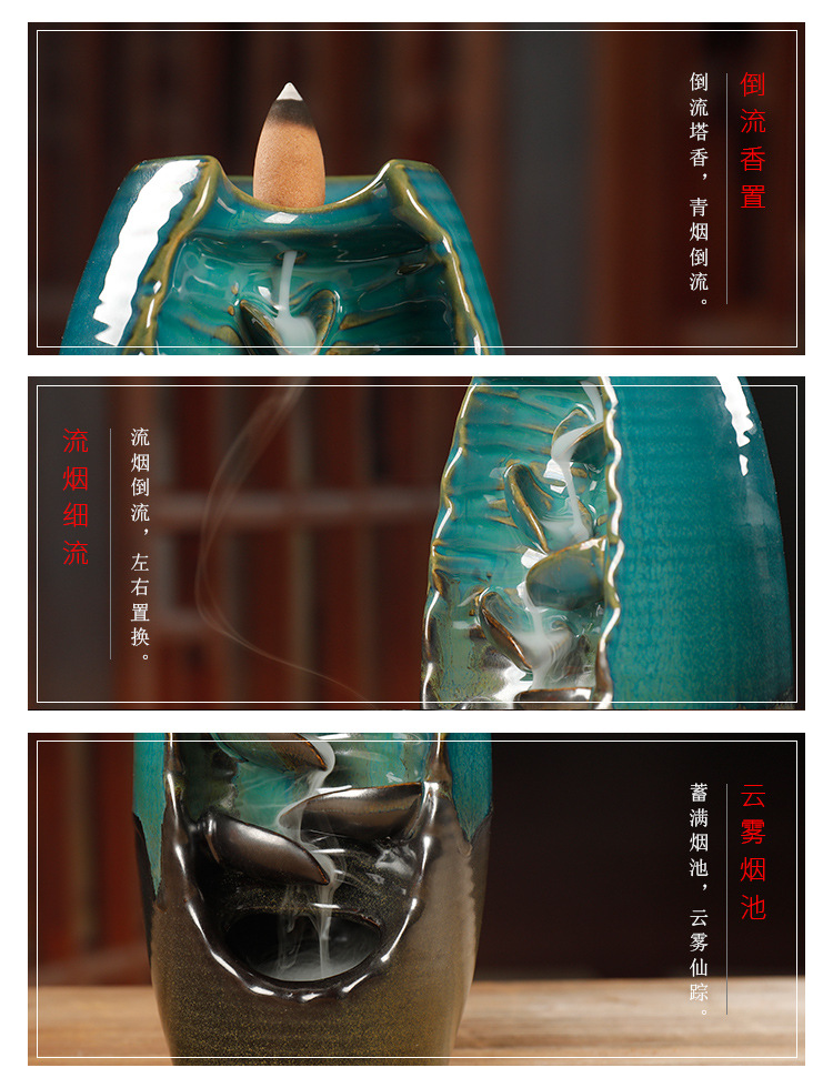 Backflow incense device Size: 20*11*10CM Material: glazed pottery Packing: Kraft paper box
