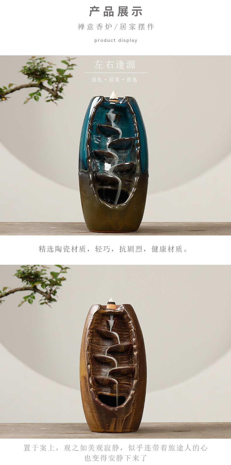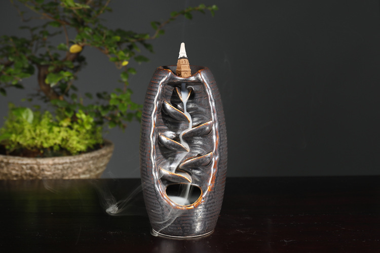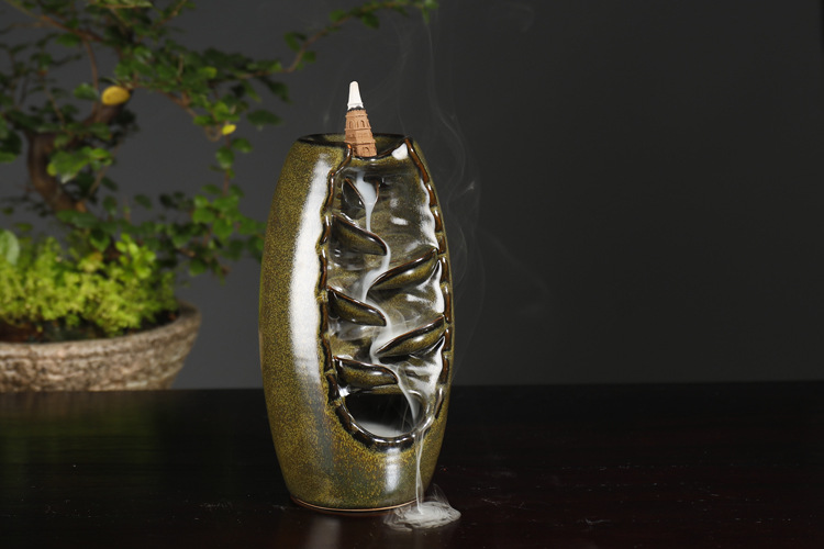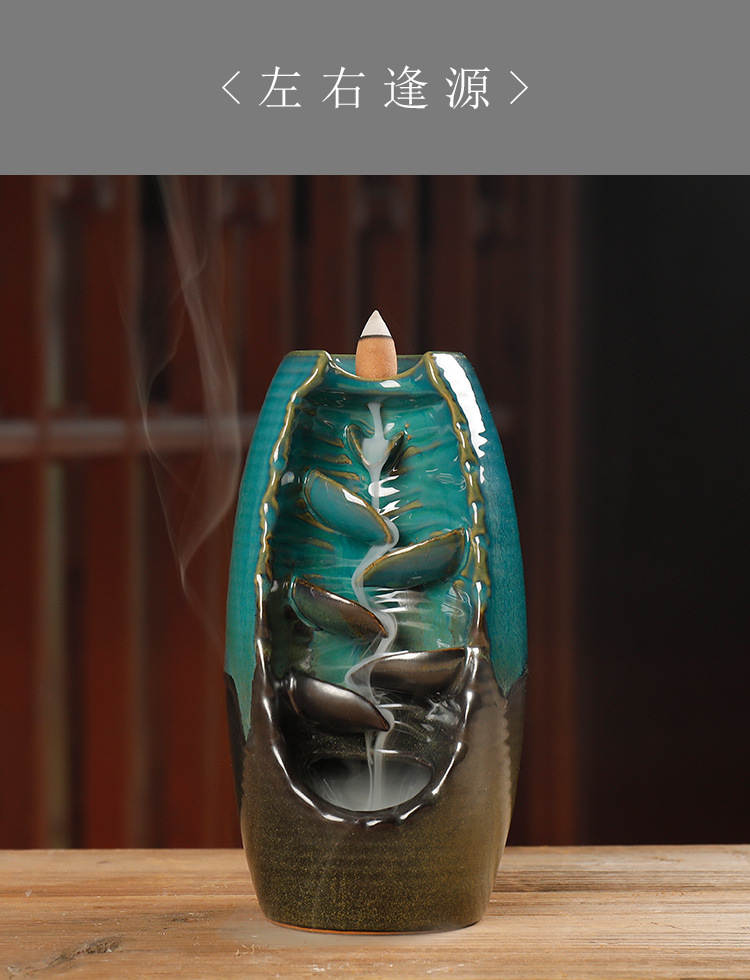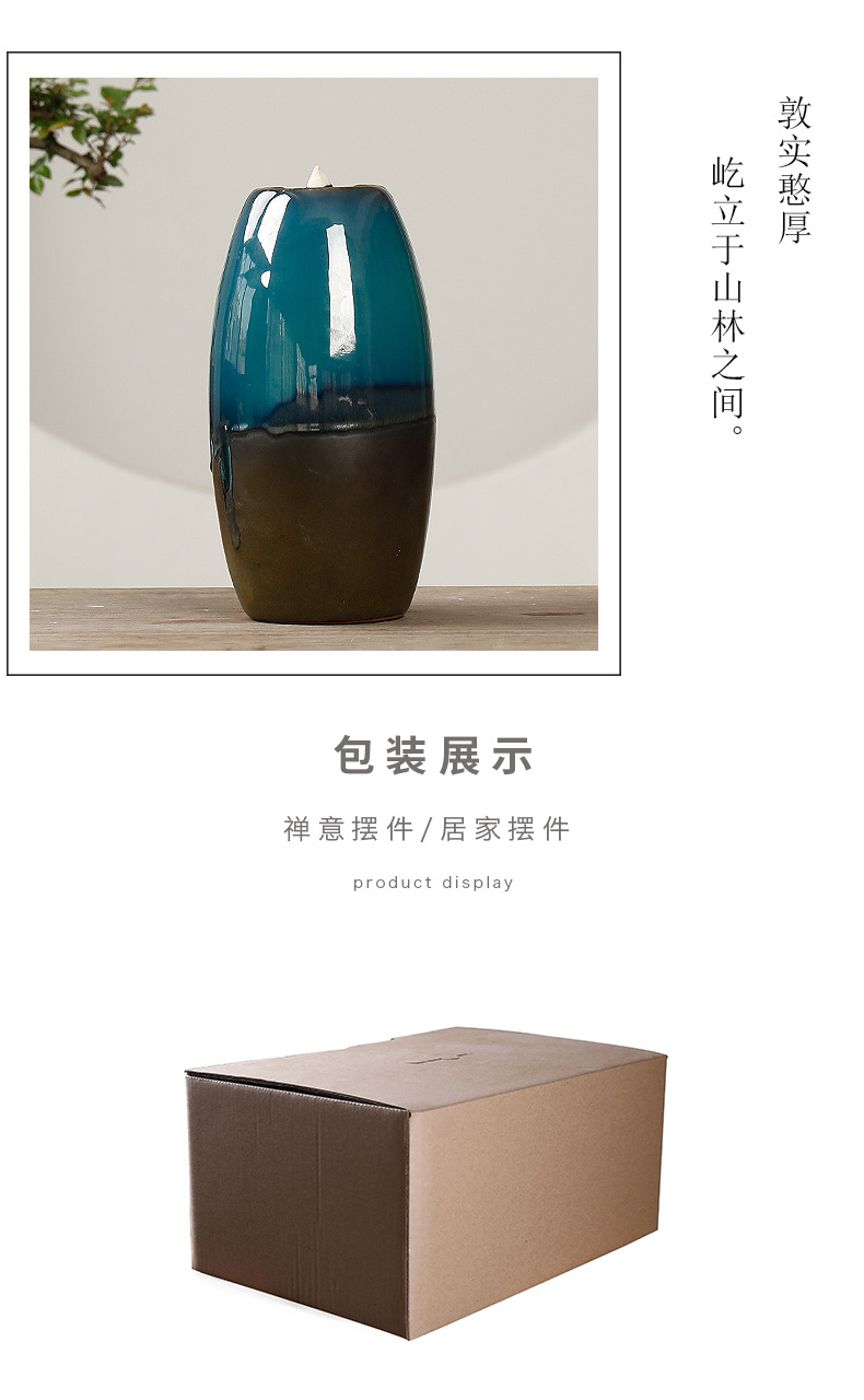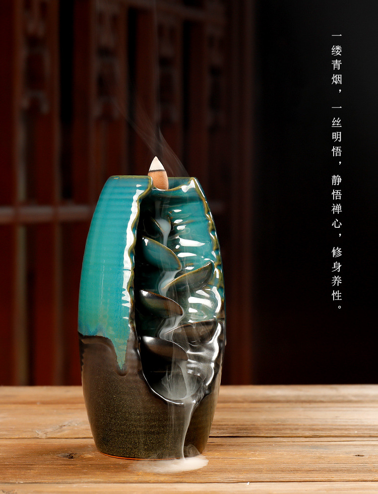 Backflow incense device Size: 20*11*10CM Material: glazed pottery Packing: Kraft paper box
