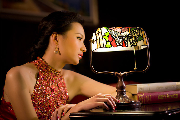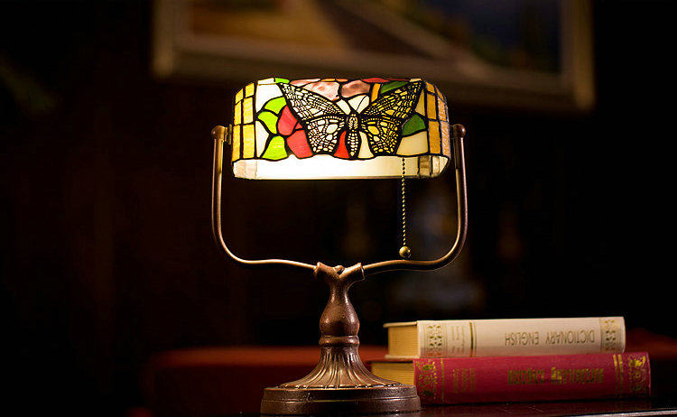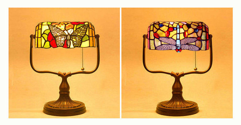 Vintage pastoral wedding bank rose table lamp Size: width 25CM height 35CM Power: W60*1 Voltage: 220v Material: TIFFANY stained glass + metal base Packing: foam+carton Carton specifications: 40*25*20CM QTY:1PCS
