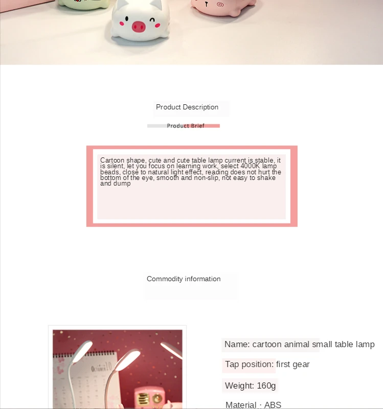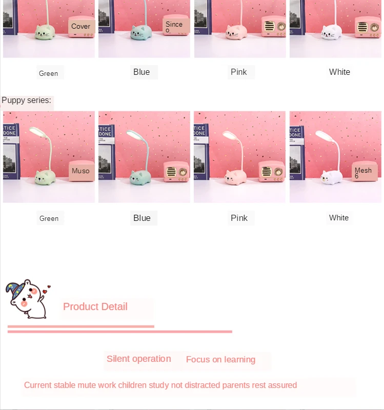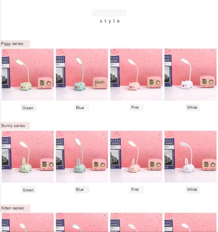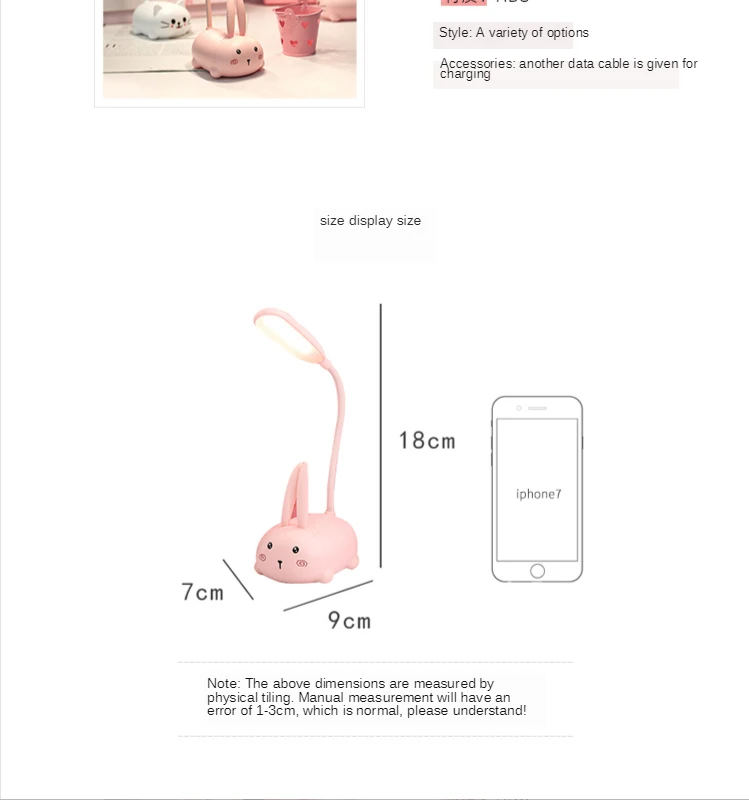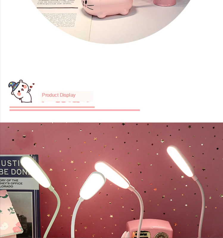 Children’s eye protection LED table lamp Size: 9*7*18 (cm) Material: ABS Voltage: 5V Power: 3W Packing: color box Carton specifications: 62*39*61CM QTY: 120PCS