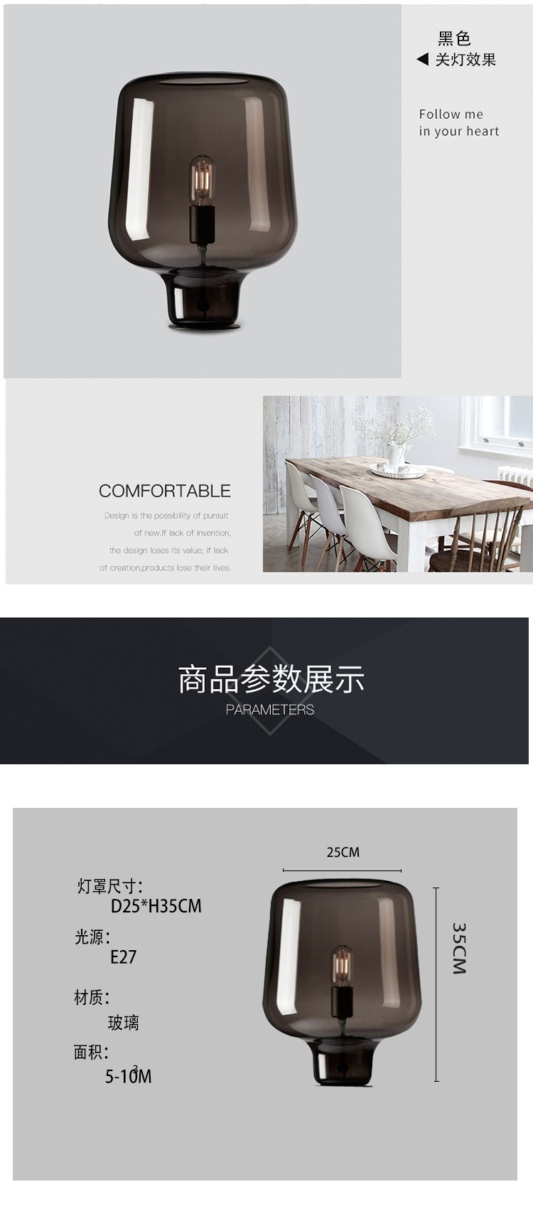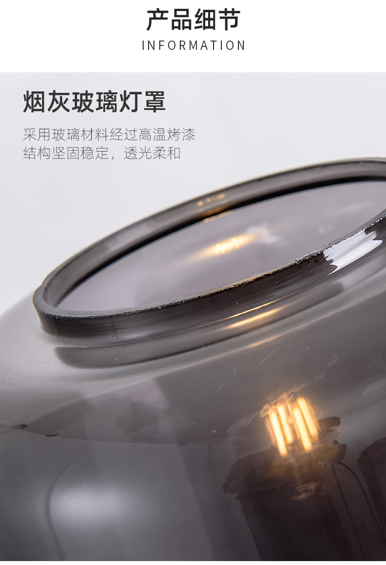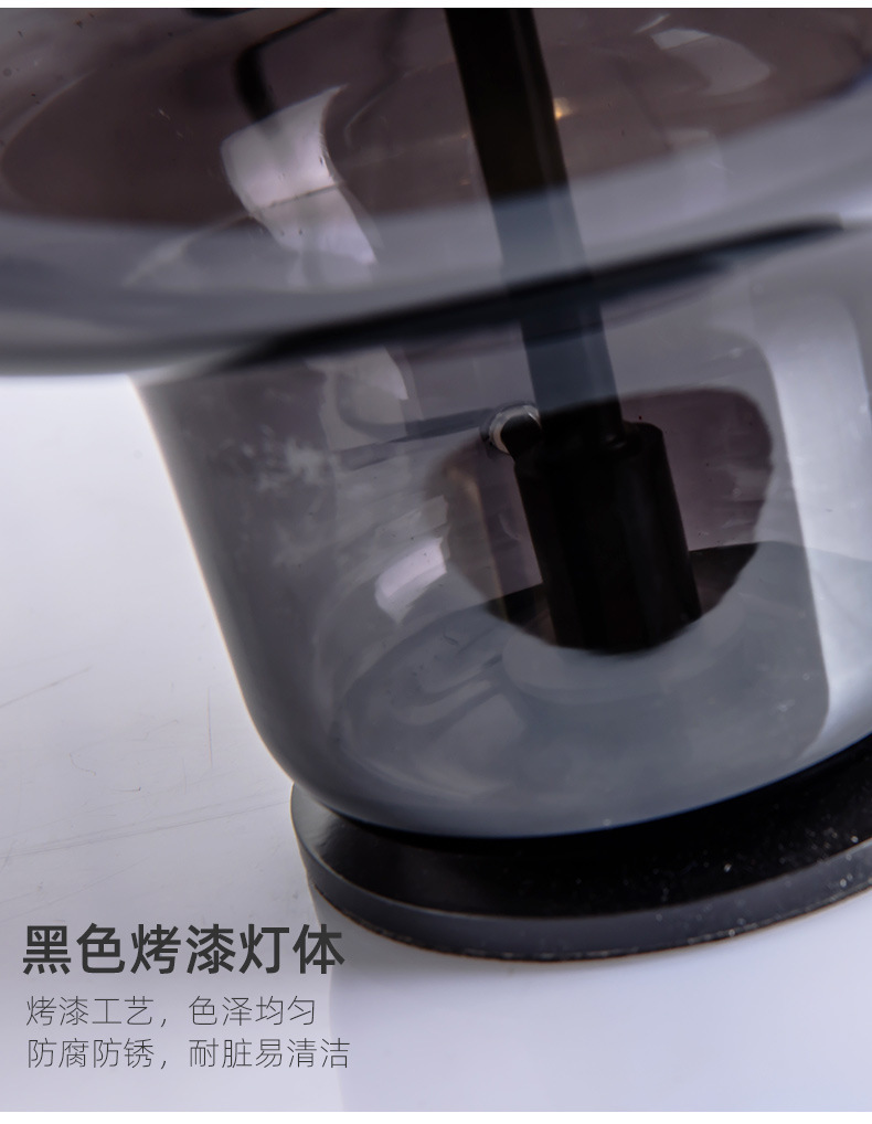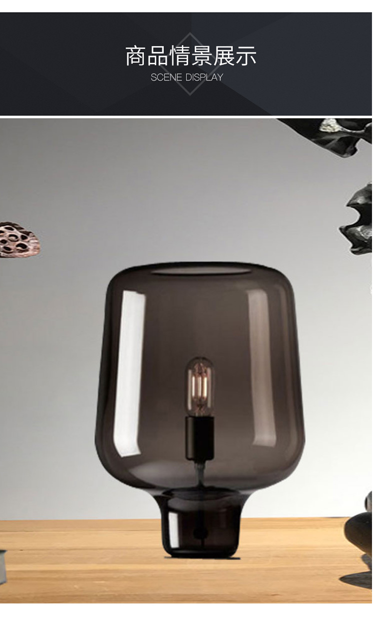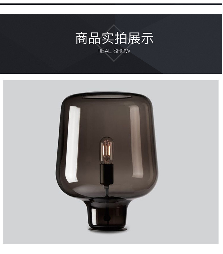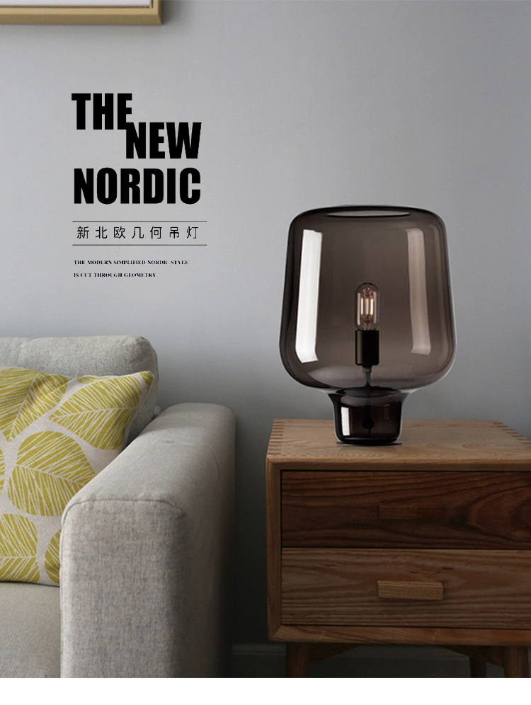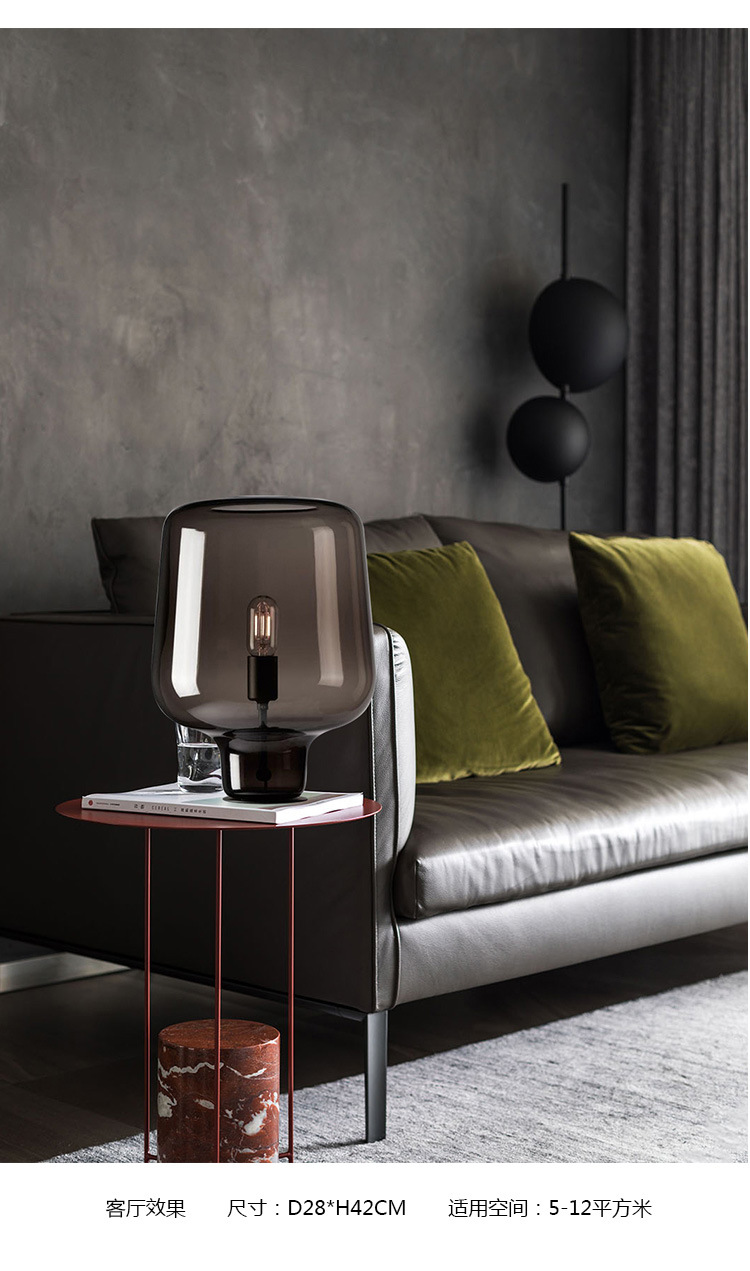 Nordic bedside table lamp Size: 37*24CM Light source: E27*1 Material: Hardware + Glass Color: smoky gray Voltage: 220V Packing: foam+carton