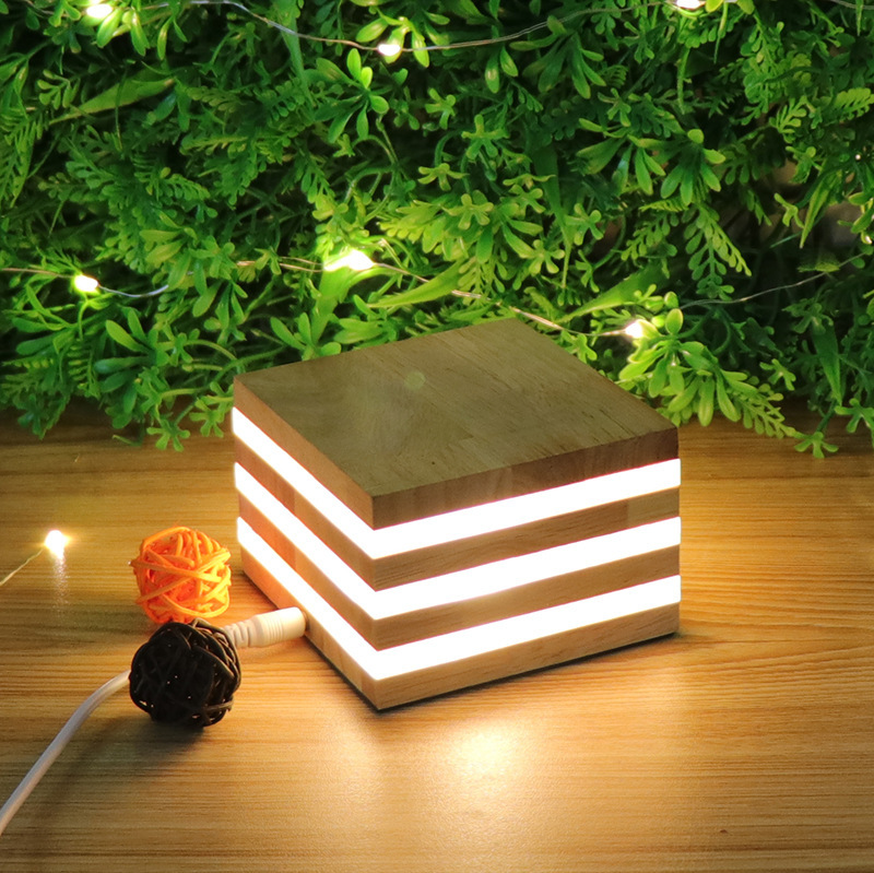 Wooden square creative led night light
