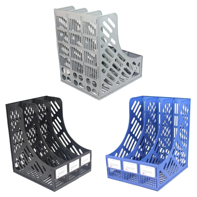File Holder Document Tray 3-Grid Desktop Storage Organizer Mesh Shelf Desktop Rack Book Holder Office Supplies