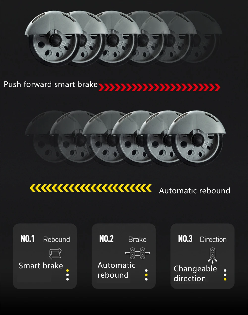 1. Using the rebound principle of the spring, the two wheels push forward and the spring stretches, thereby generating elastic force.