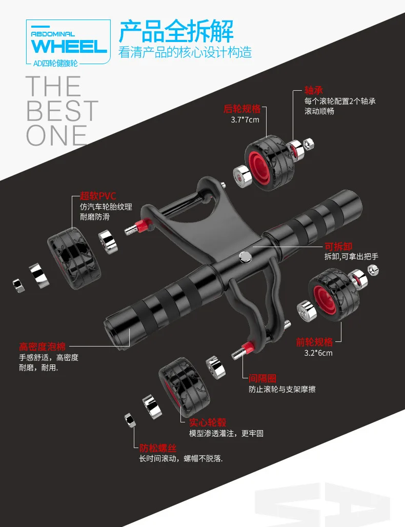 Four Wheels AB Abdominal Wheel Fitness Waist Abdomen Exercise Four-wheeled Abdominal Wheel for Gym Equipment
