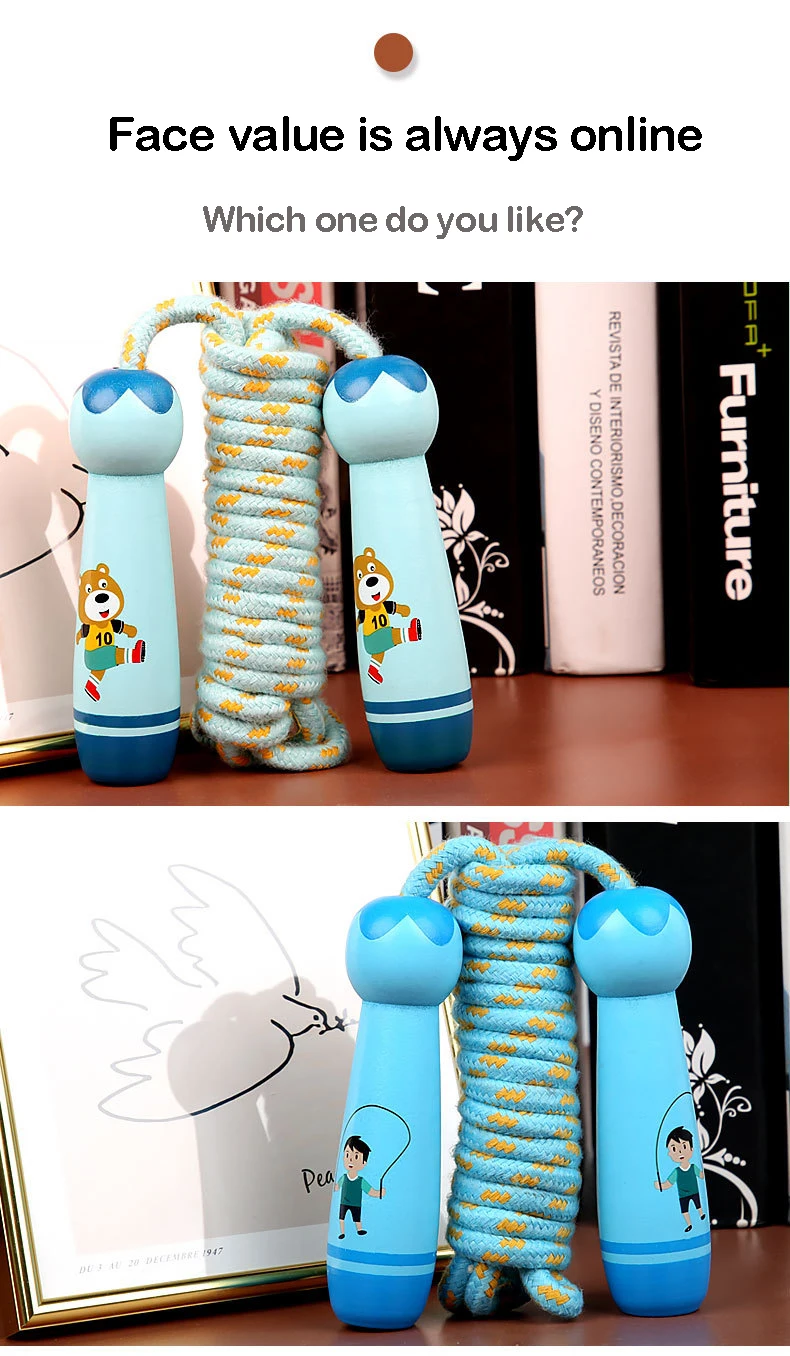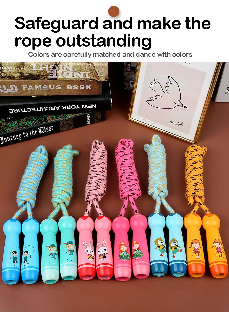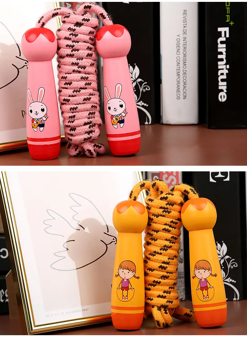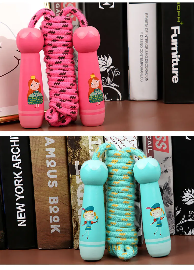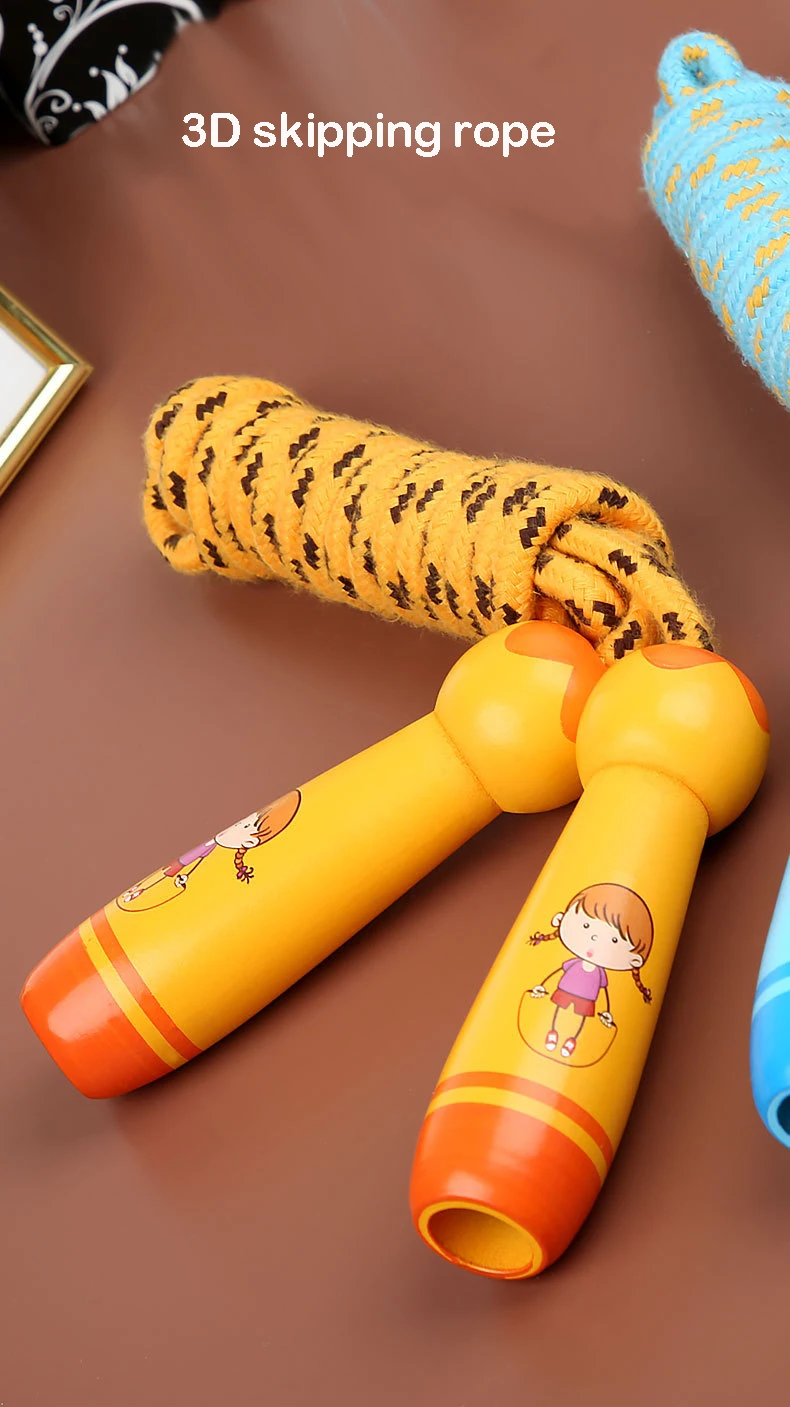 New jump rope men and women high-value sports fitness colorful wooden handle cotton hemp rope