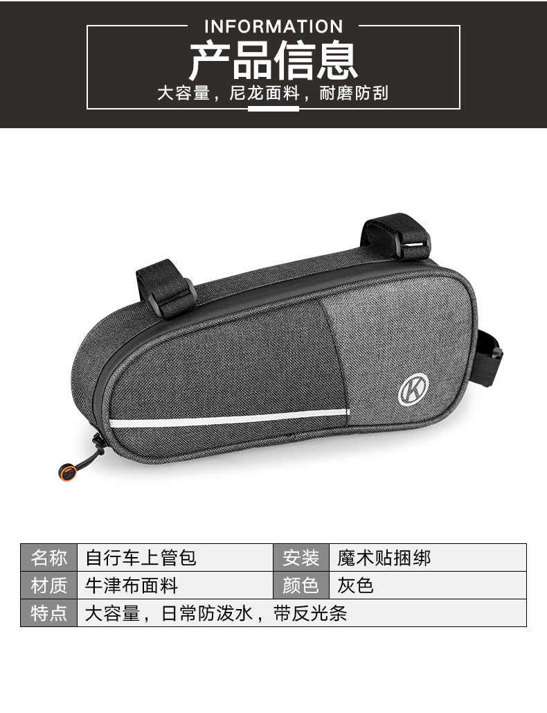 Bicycle bag, beam triangle bag, large capacity, extended nylon bag, bicycle mountain bike bag, front beam triangle bag