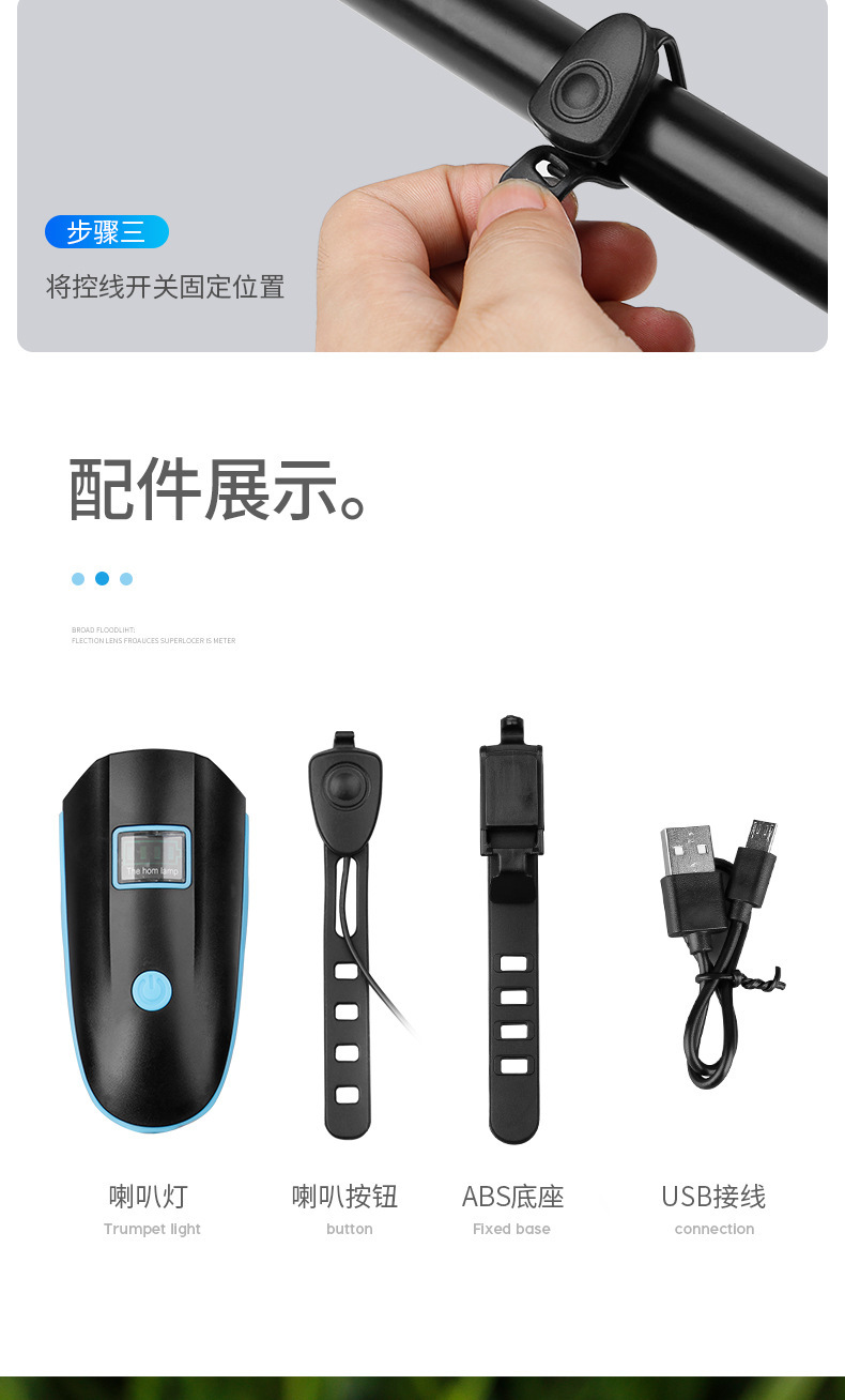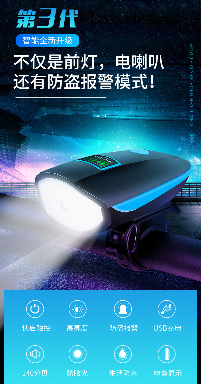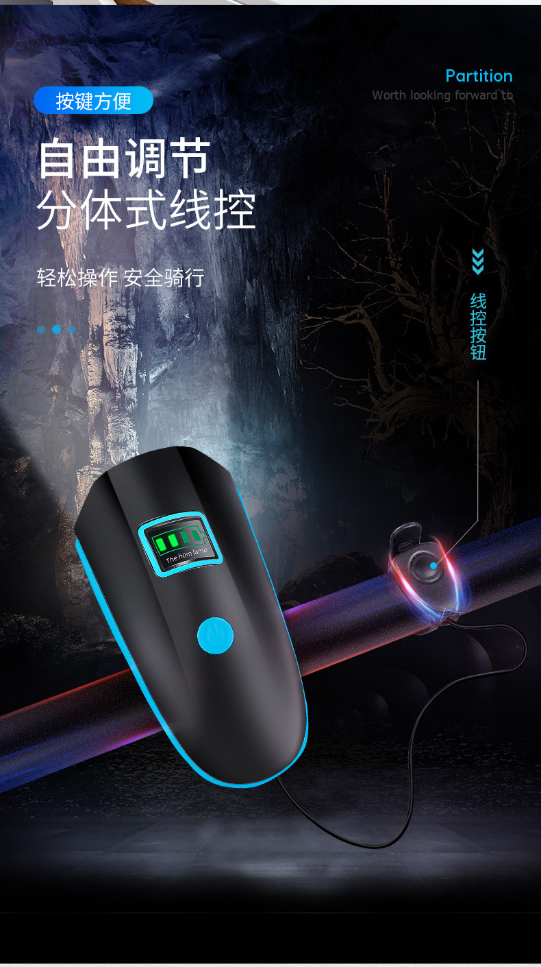 Bicycle lights, car headlights with horns, riding equipment, headlights, glare flashlights, mountain bike bicycle lights
