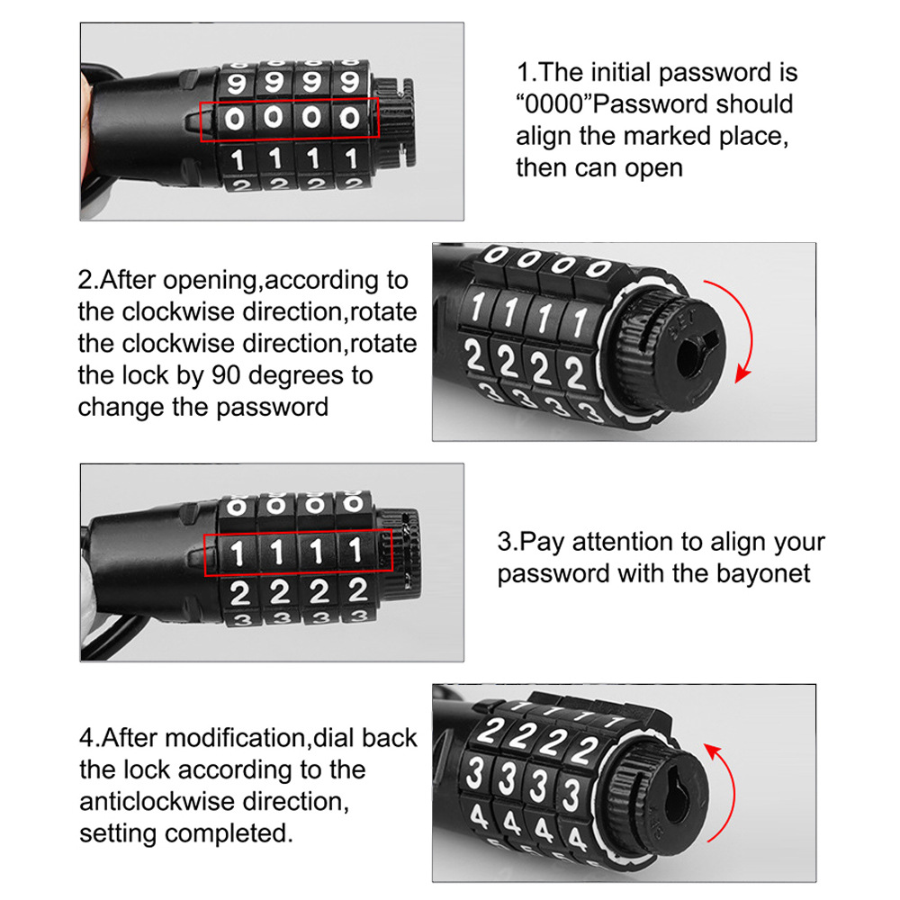 Bicycle lock luggage lock helmet lock road mountain bike wire lock mountain bike motorcycle password wire rope lock