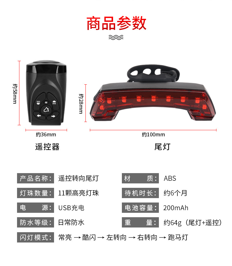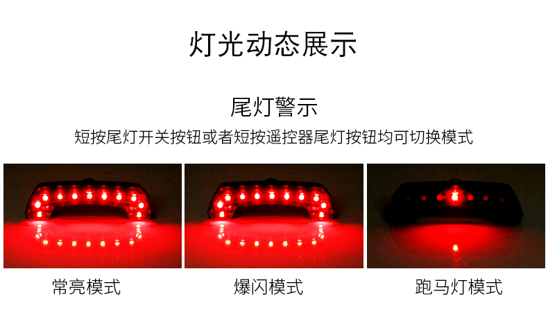 The working mode of the bicycle tail light can be controlled through the wireless function
