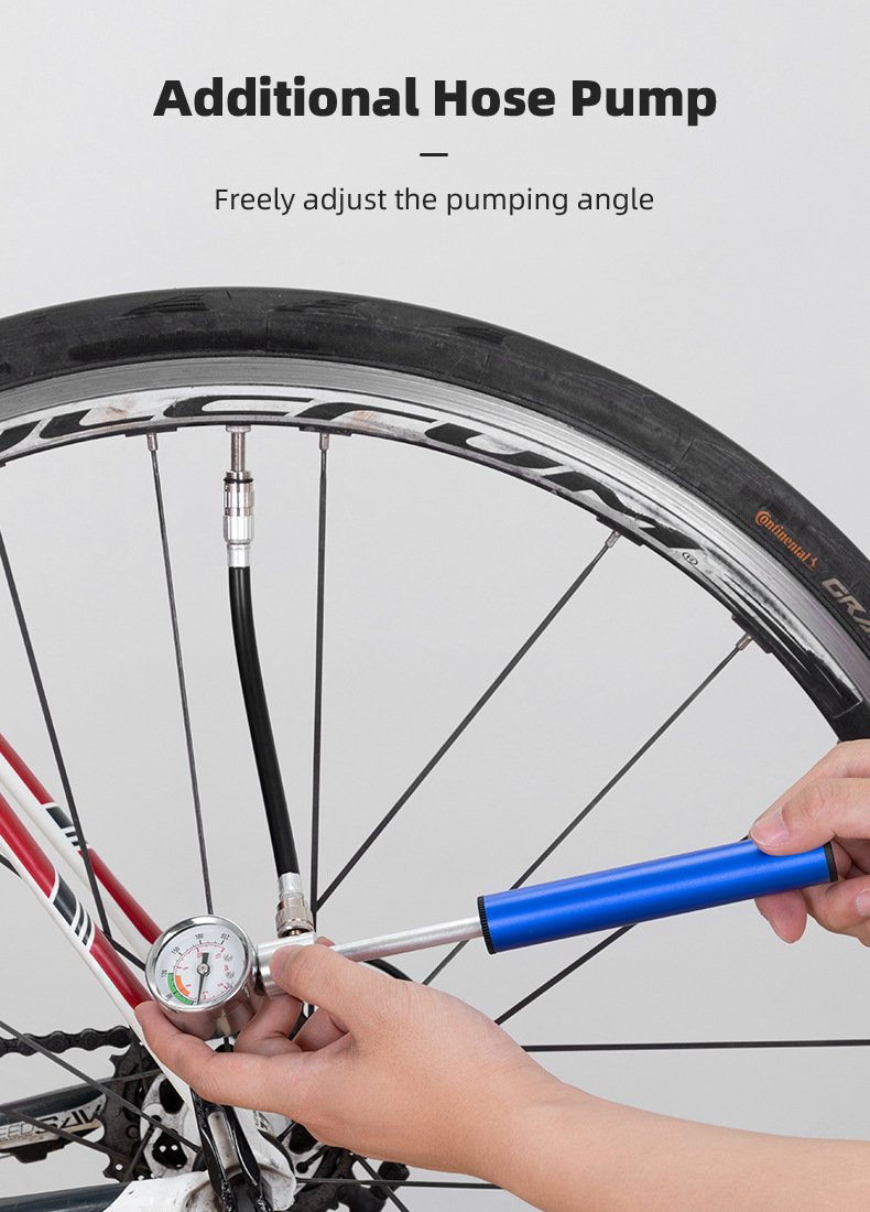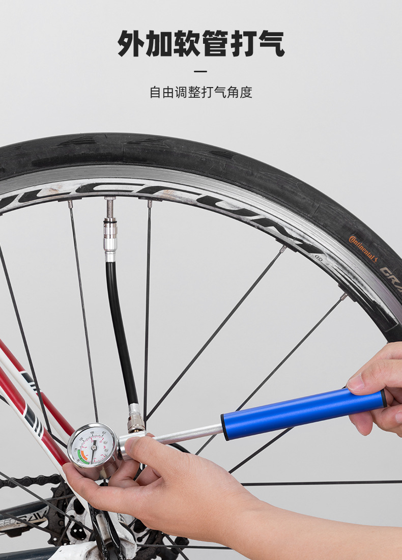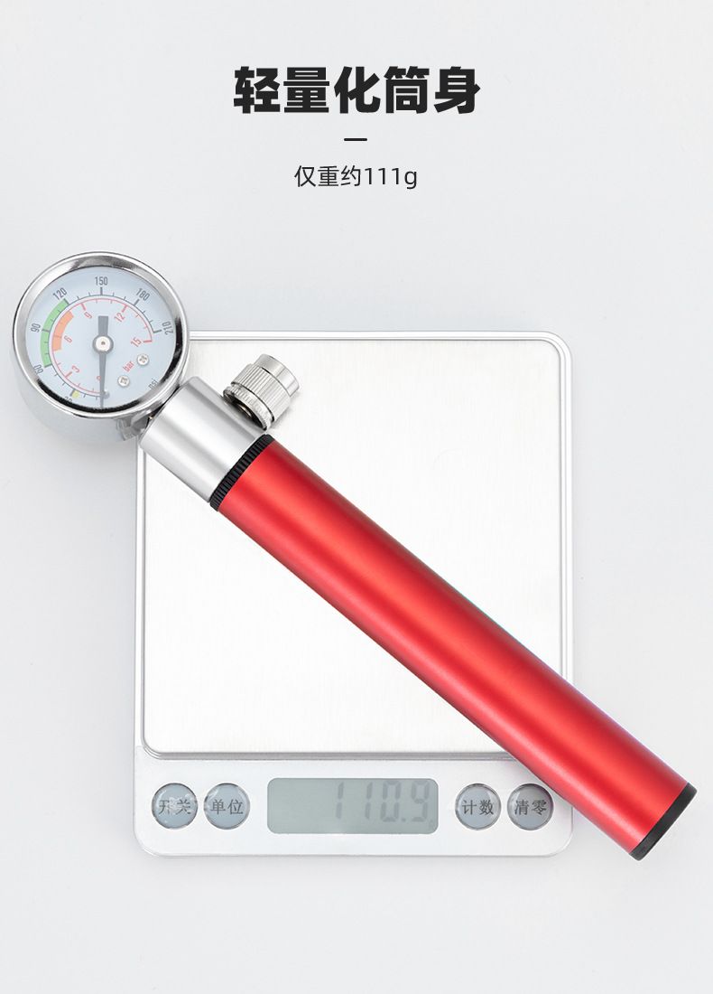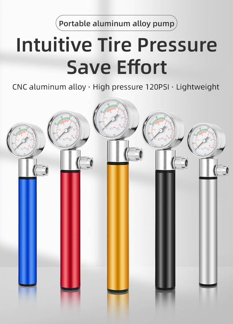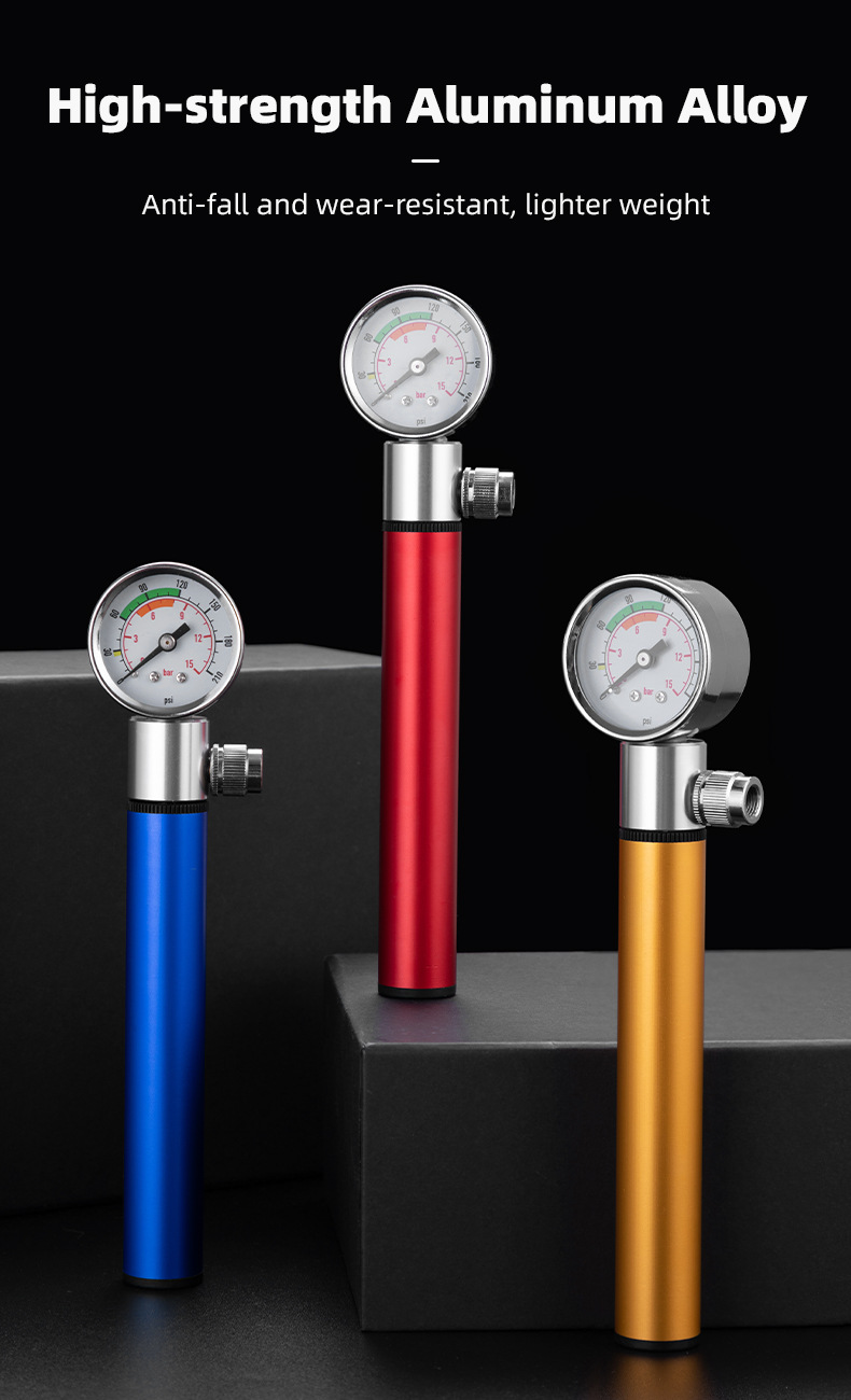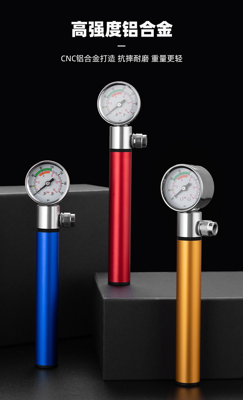 Bicycle pump aluminum alloy belt watch pump road mountain bike pump American and French general riding equipment