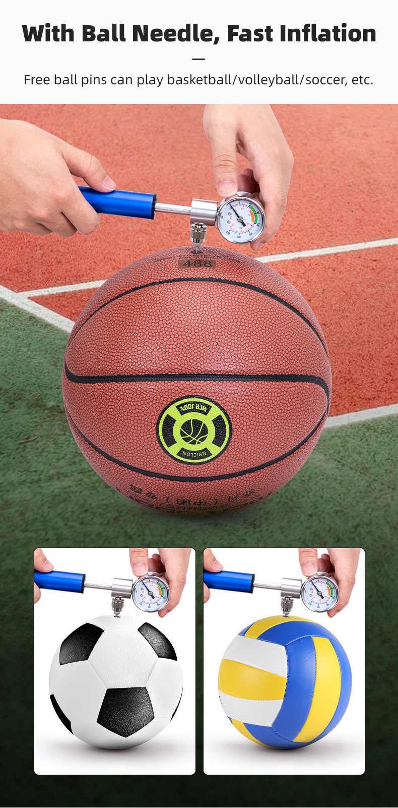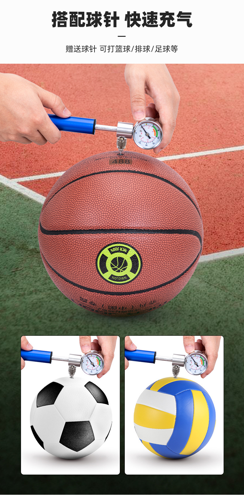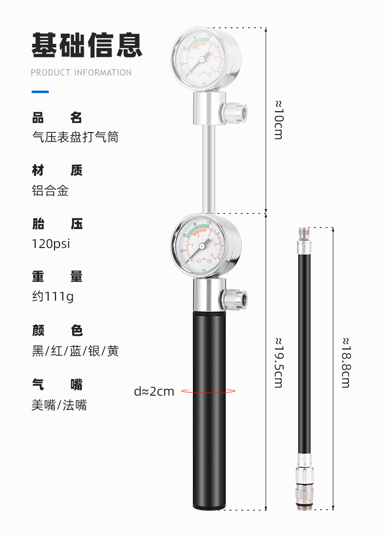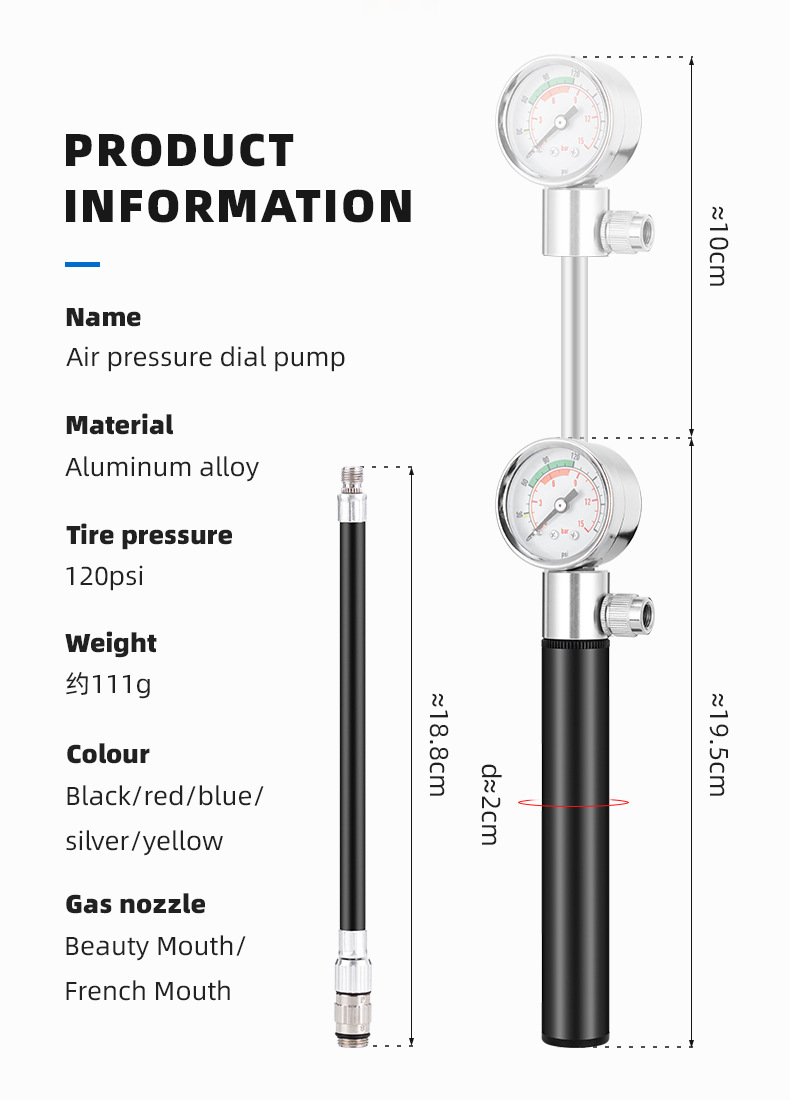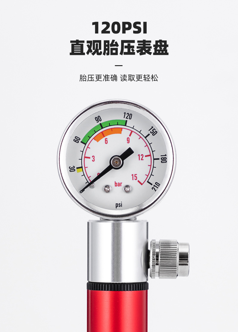 Bicycle pump aluminum alloy belt watch pump road mountain bike pump American and French general riding equipment