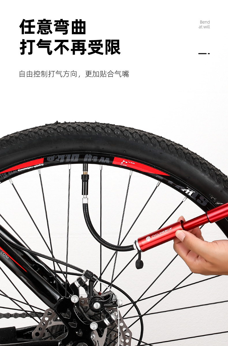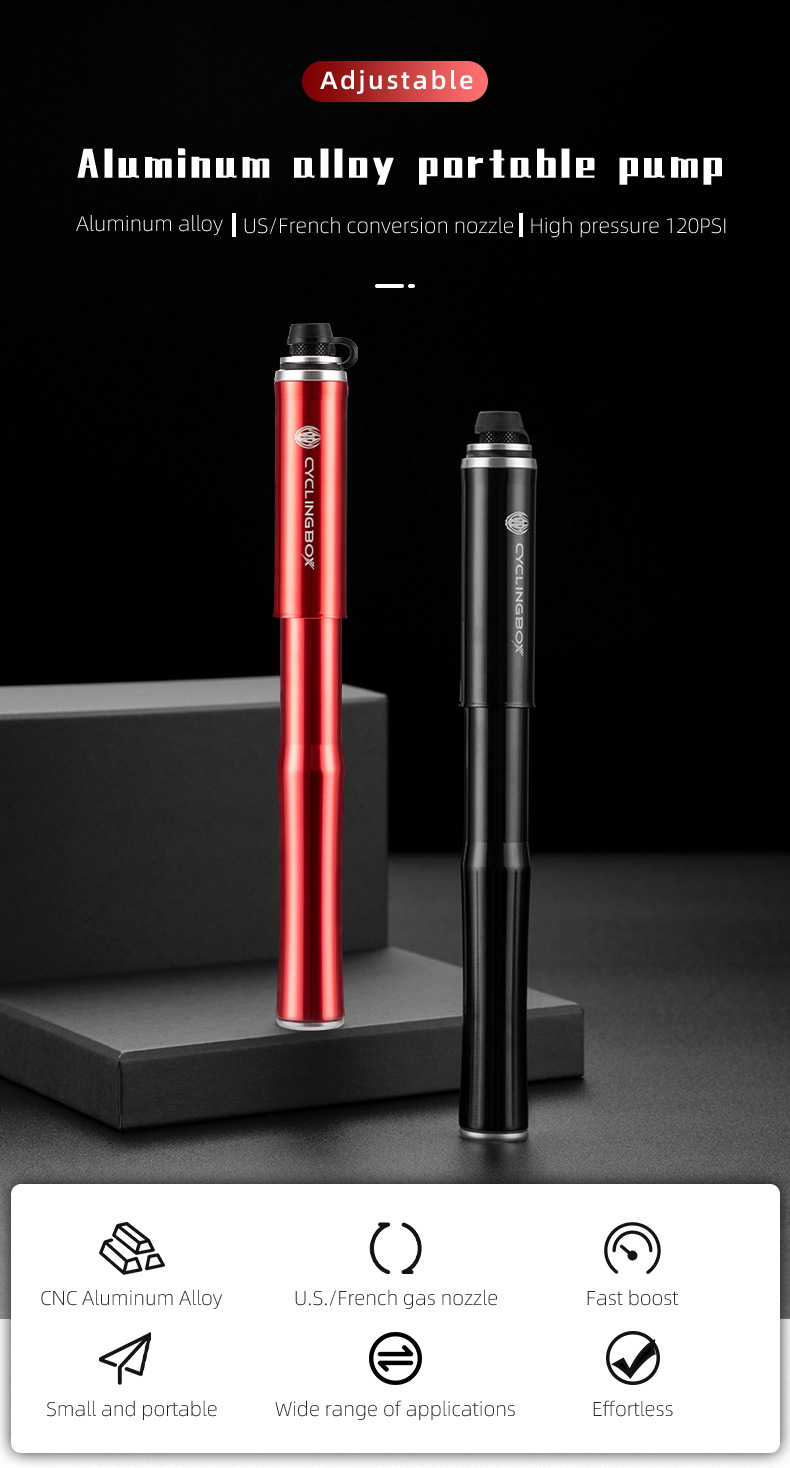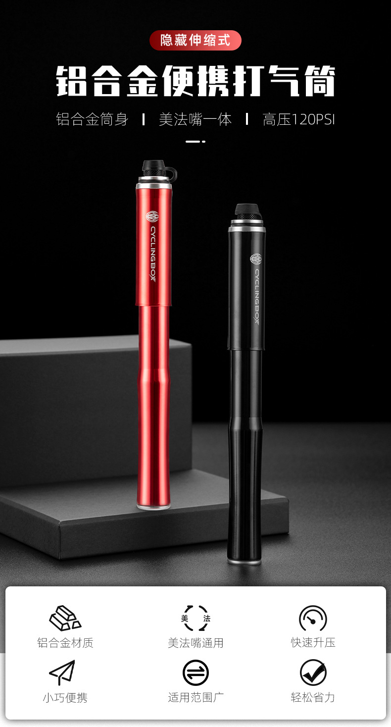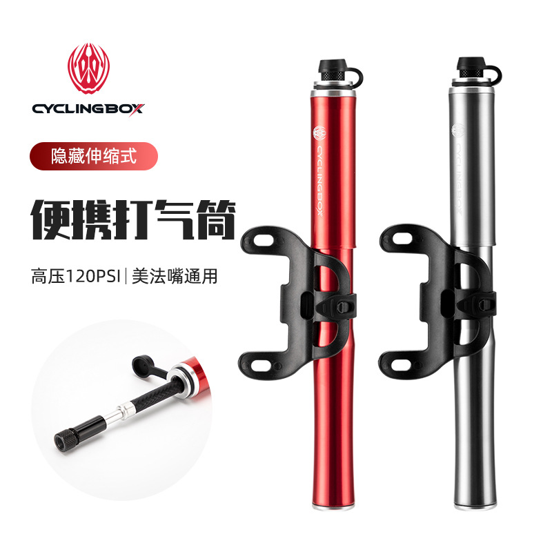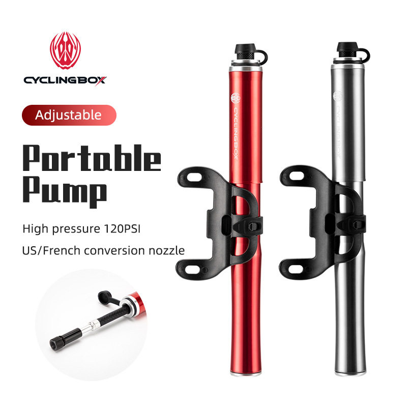 Bicycle pump aluminum alloy pump portable American and French mouth inflatable tube mountain bike inflator riding equipment