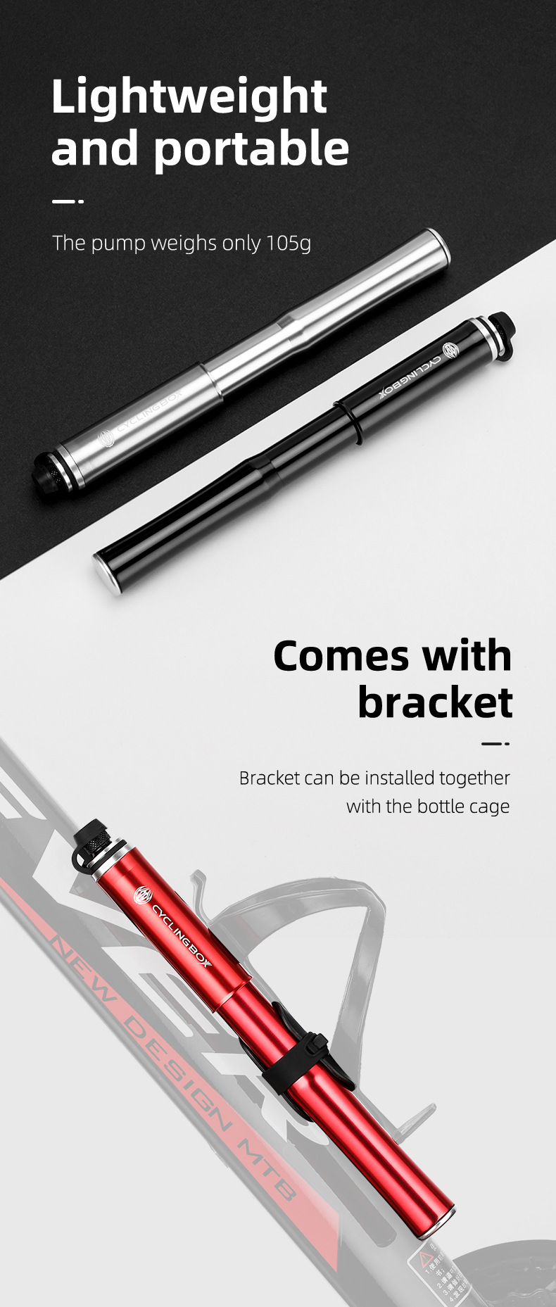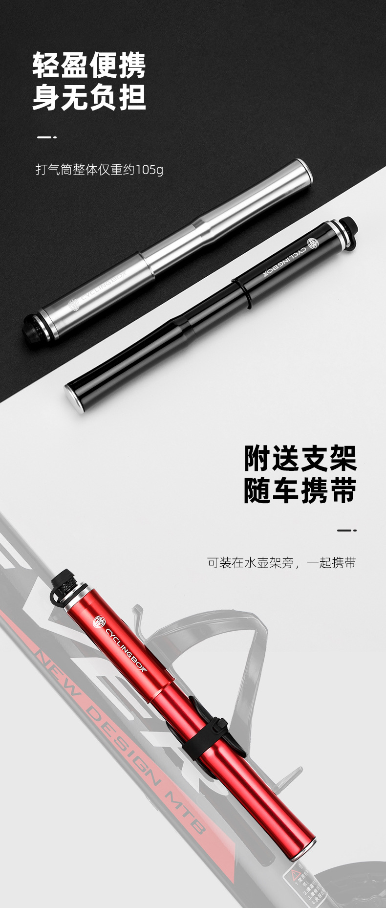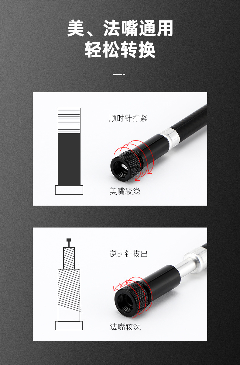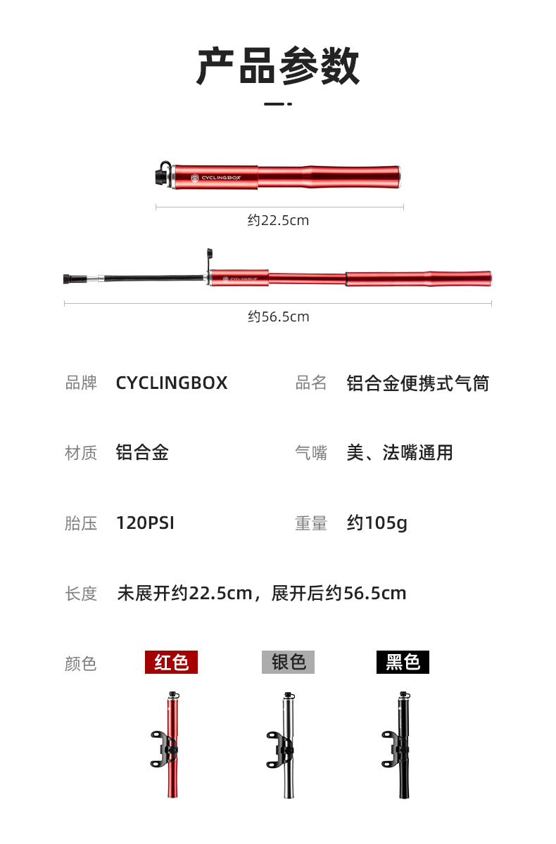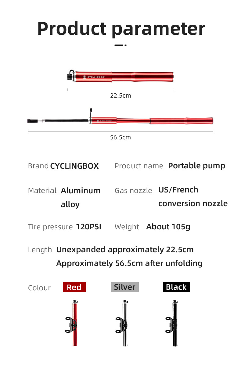 Bicycle pump aluminum alloy pump portable American and French mouth inflatable tube mountain bike inflator riding equipment