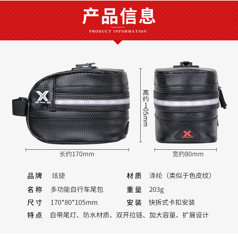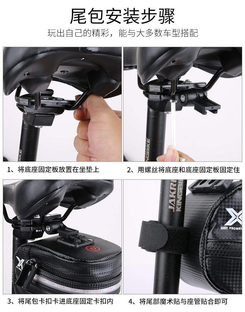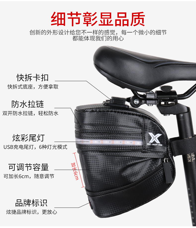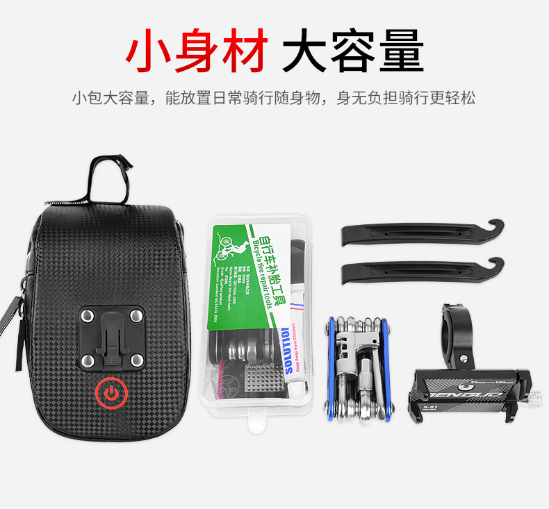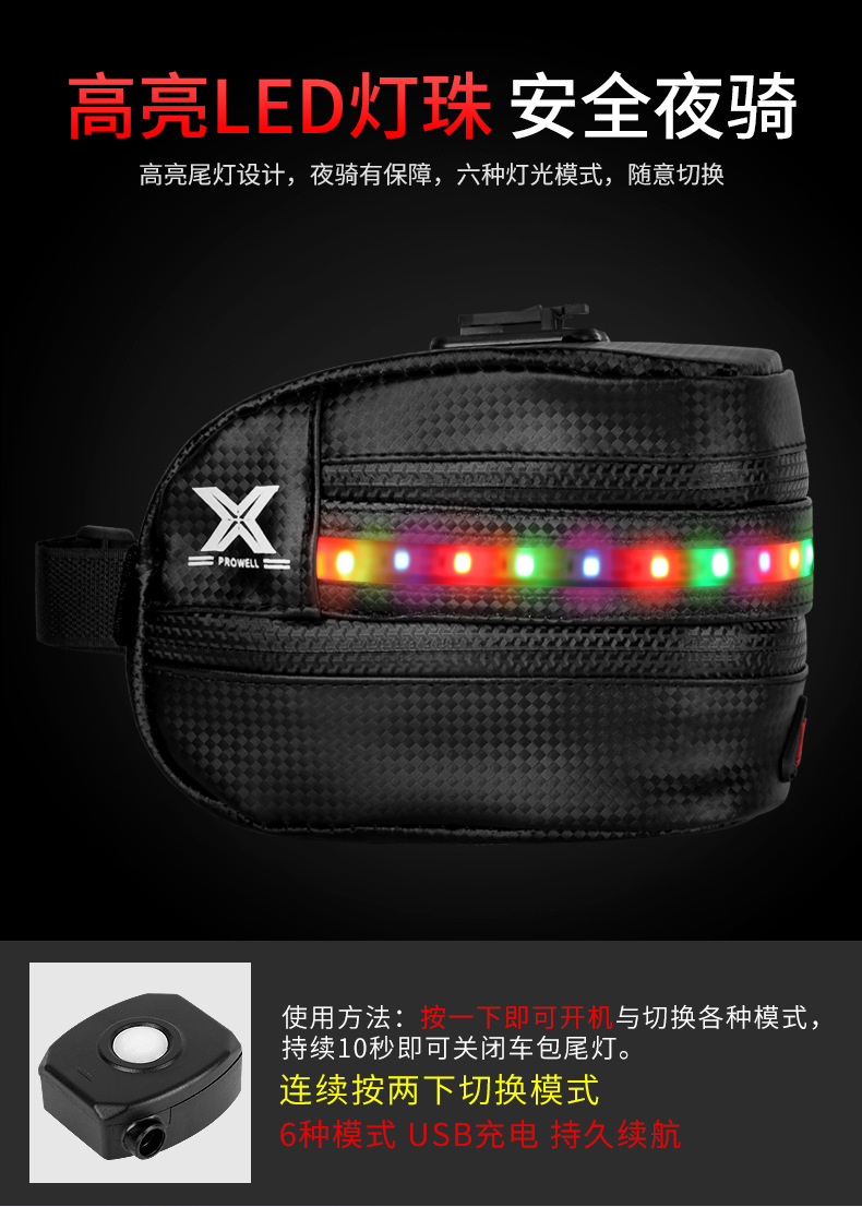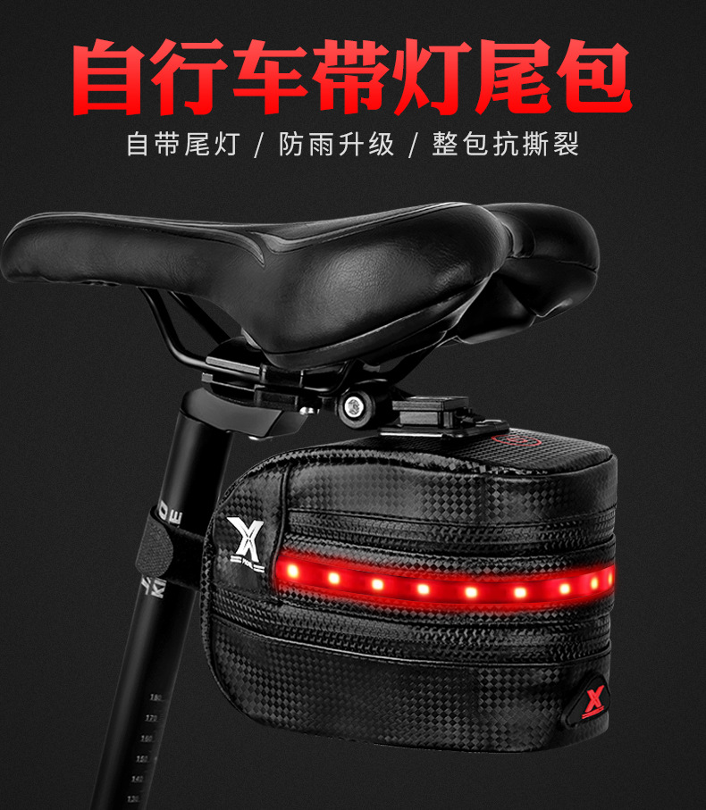 Bicycle tail bag with light, light emitting, with reflective anti-collision equipment, riding rear seat bag, single bicycle tail bag