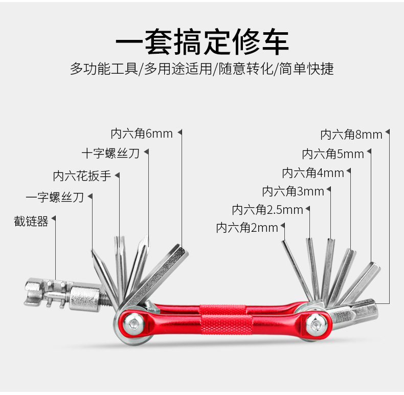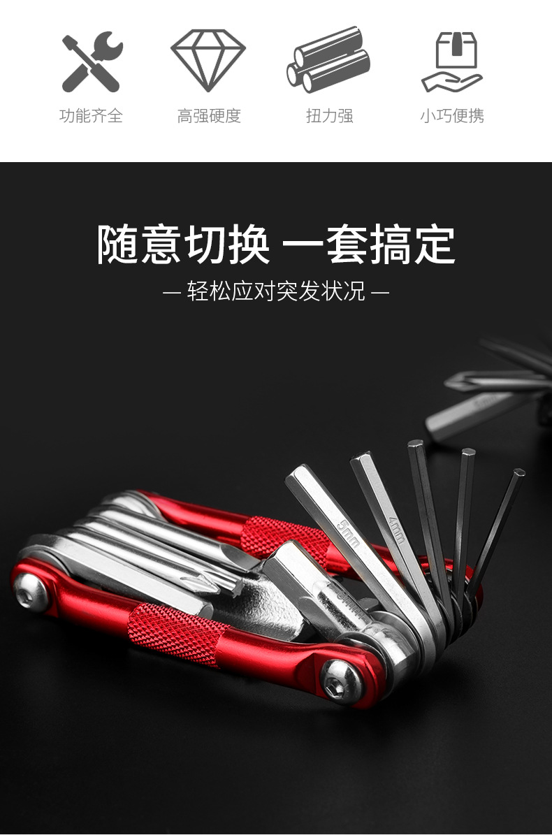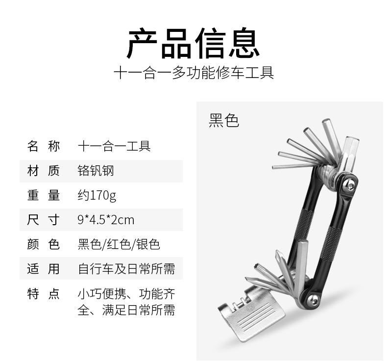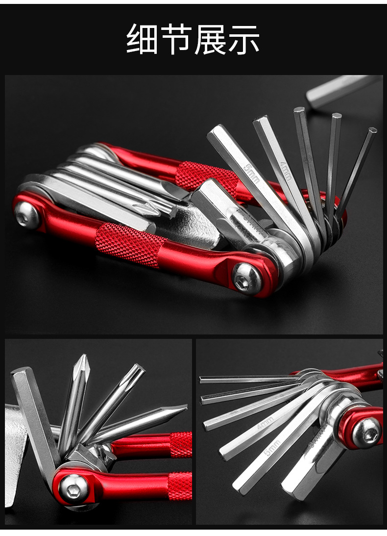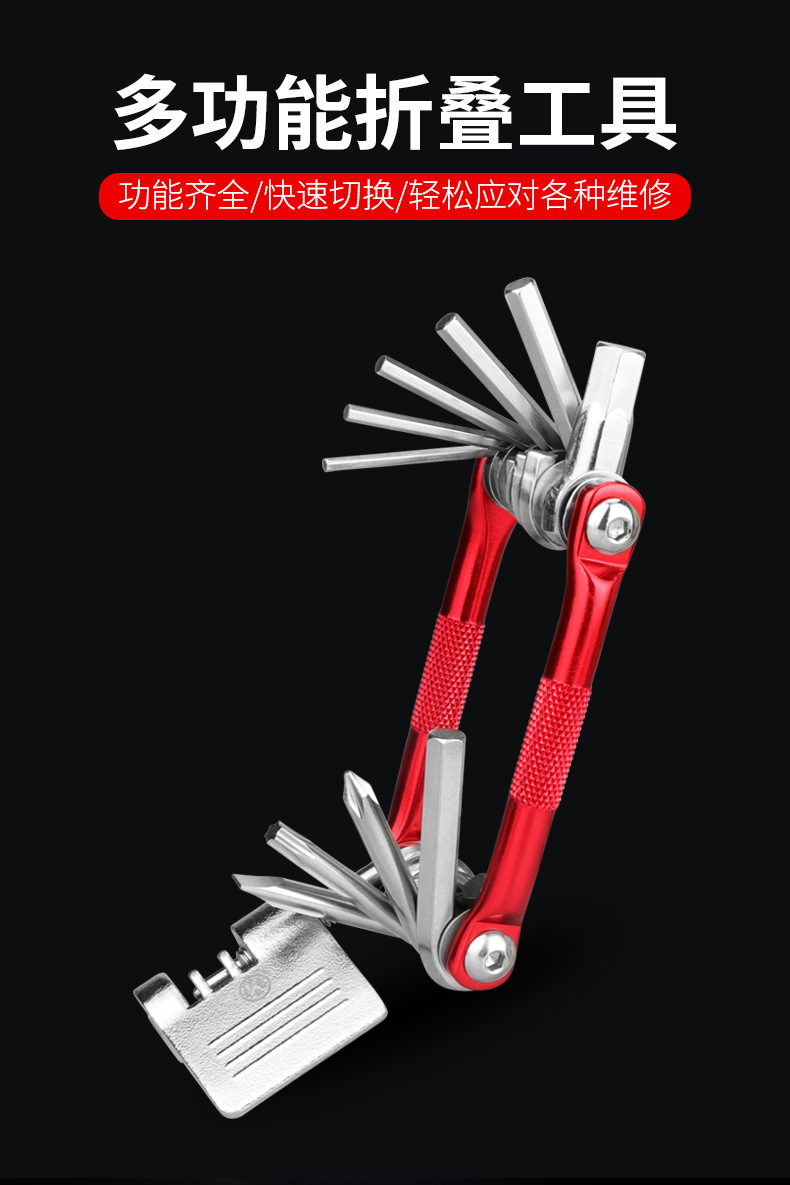 Bicycle tool multifunctional folding tool 11 in one combination tool mountain bike repair tool