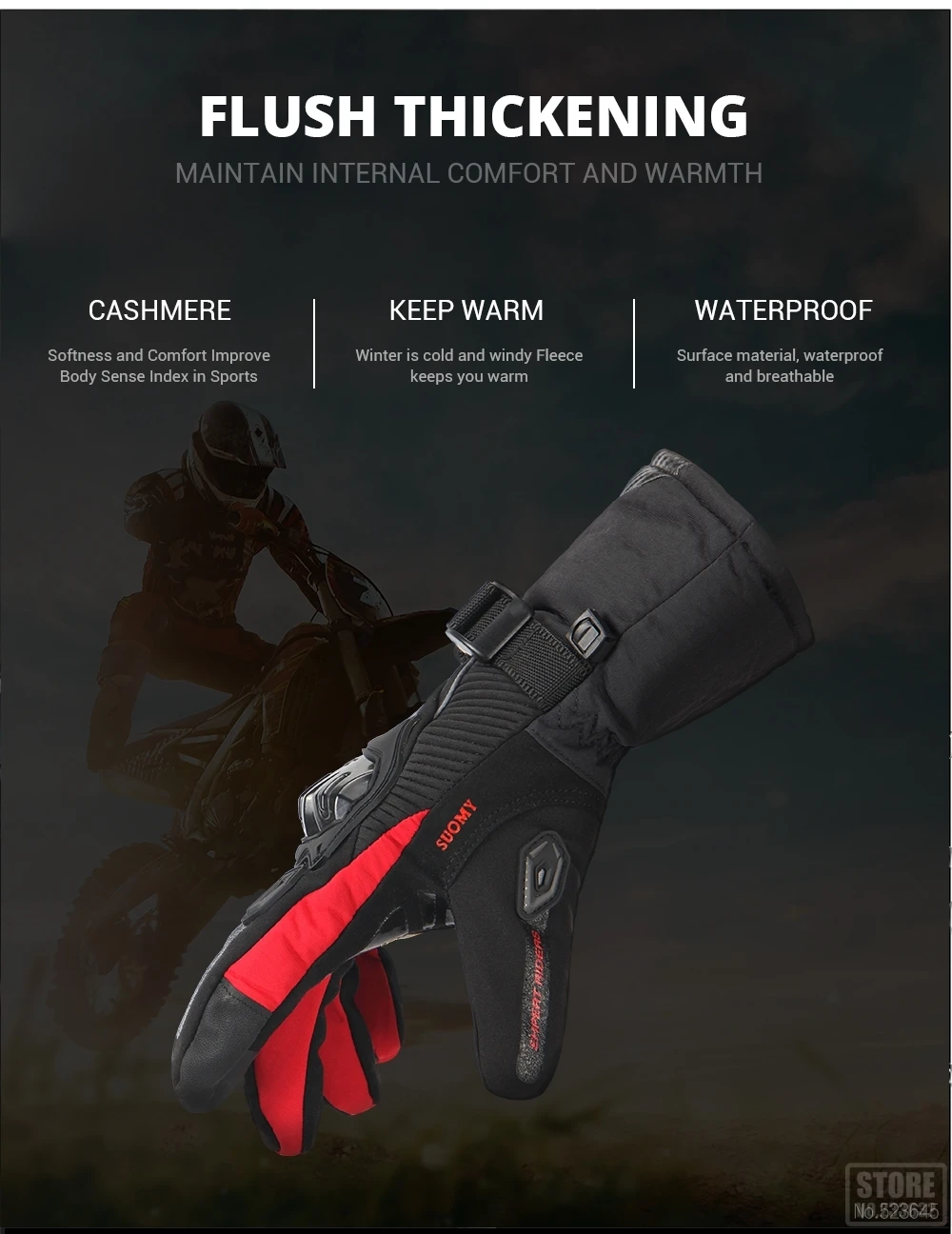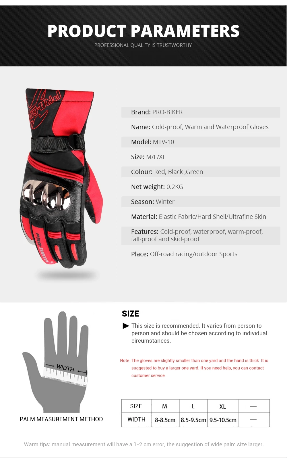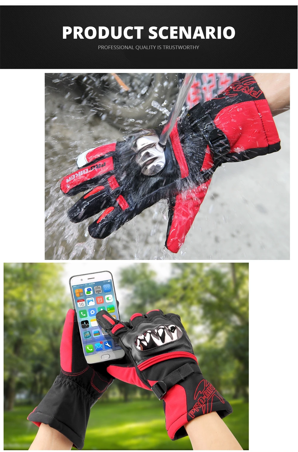 WATERPROOF: these motorbike hands gloves are waterproof, no problem riding for several hours under normal rain or even one hour under heavy rain, always keep your hands dry and warm in the cold rain snow weather day