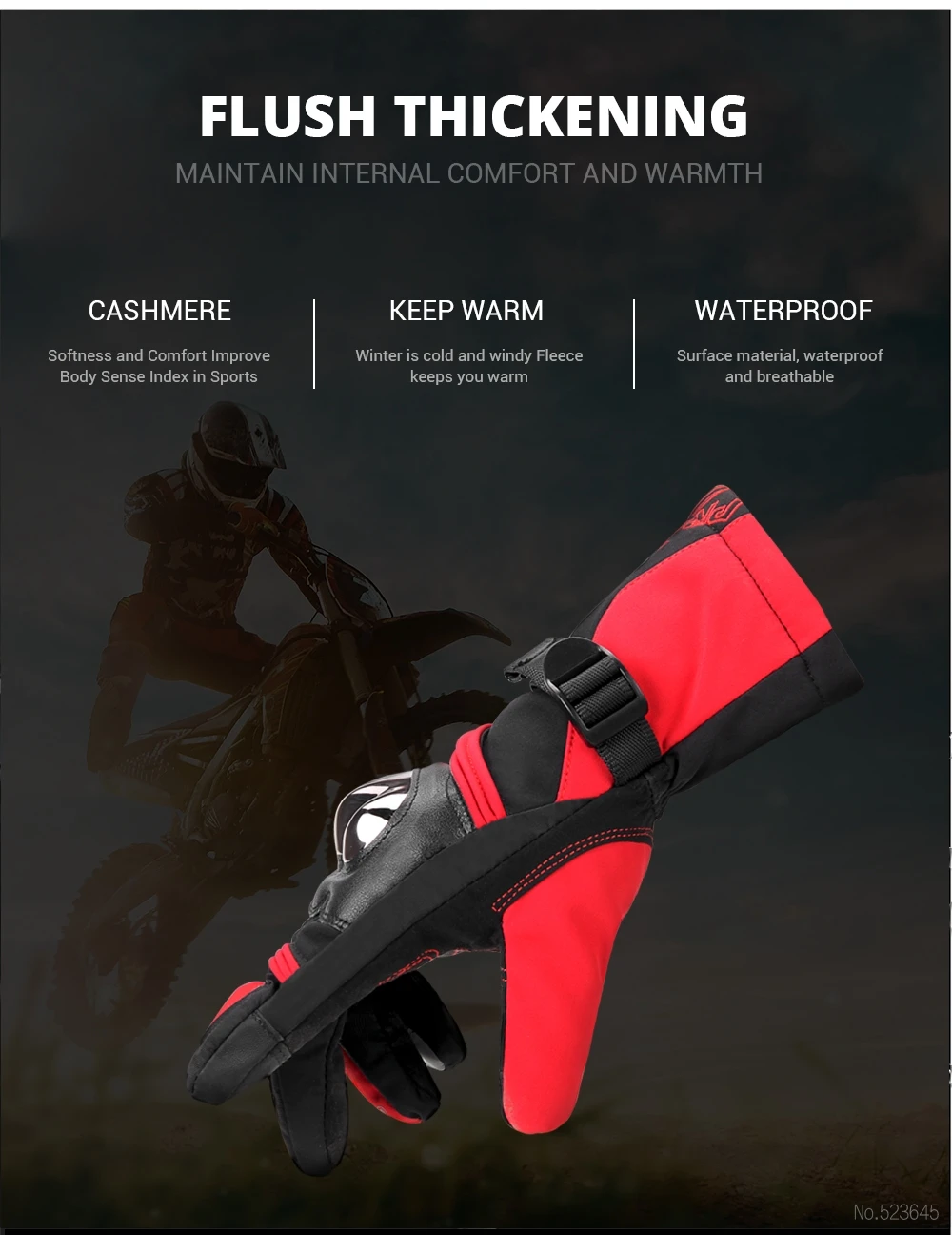 WARM & WINDPROOF: lined with soft touch layer, long cuff full windproof, adjustable wrist tighten belt, keep your hands warm when riding fast in winter snow cold days
