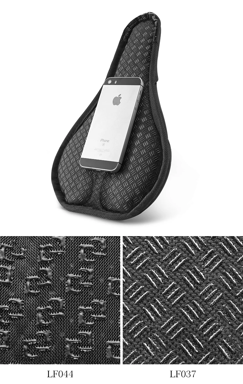 The outer layer is made of breathable Lycra fabric. The hollow design is not sultry. The inner Memory cotton + Silicone cushion is soft and shock-absorbing (But LF037 without Silicone) . The cross strap is fixed, it is not easy to shake