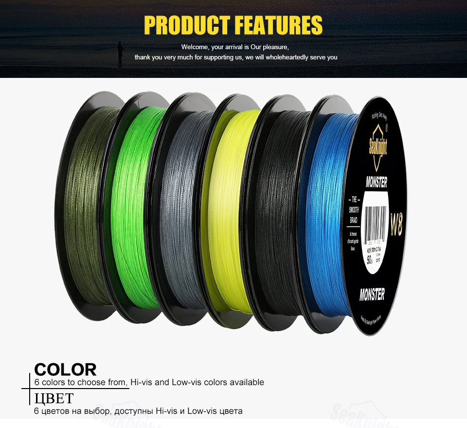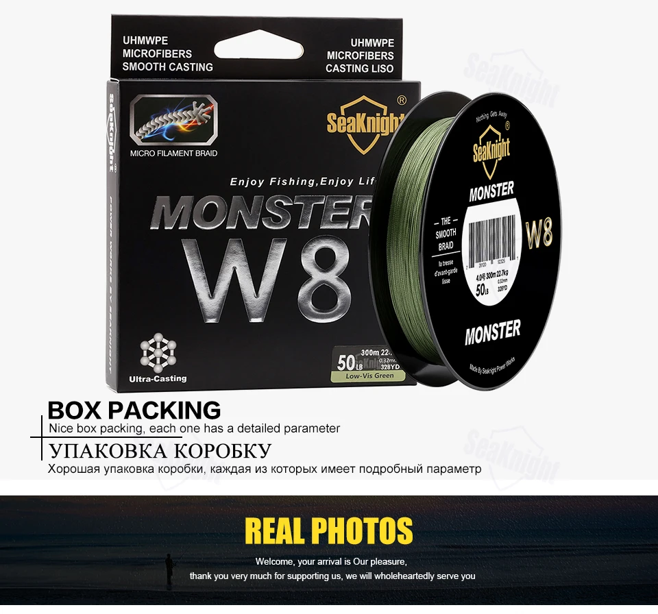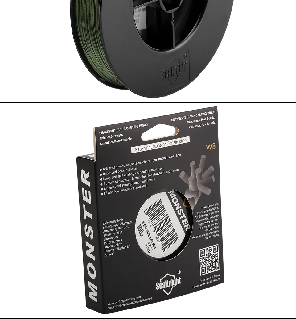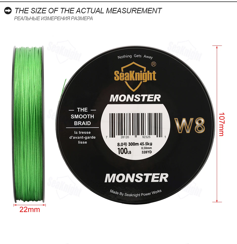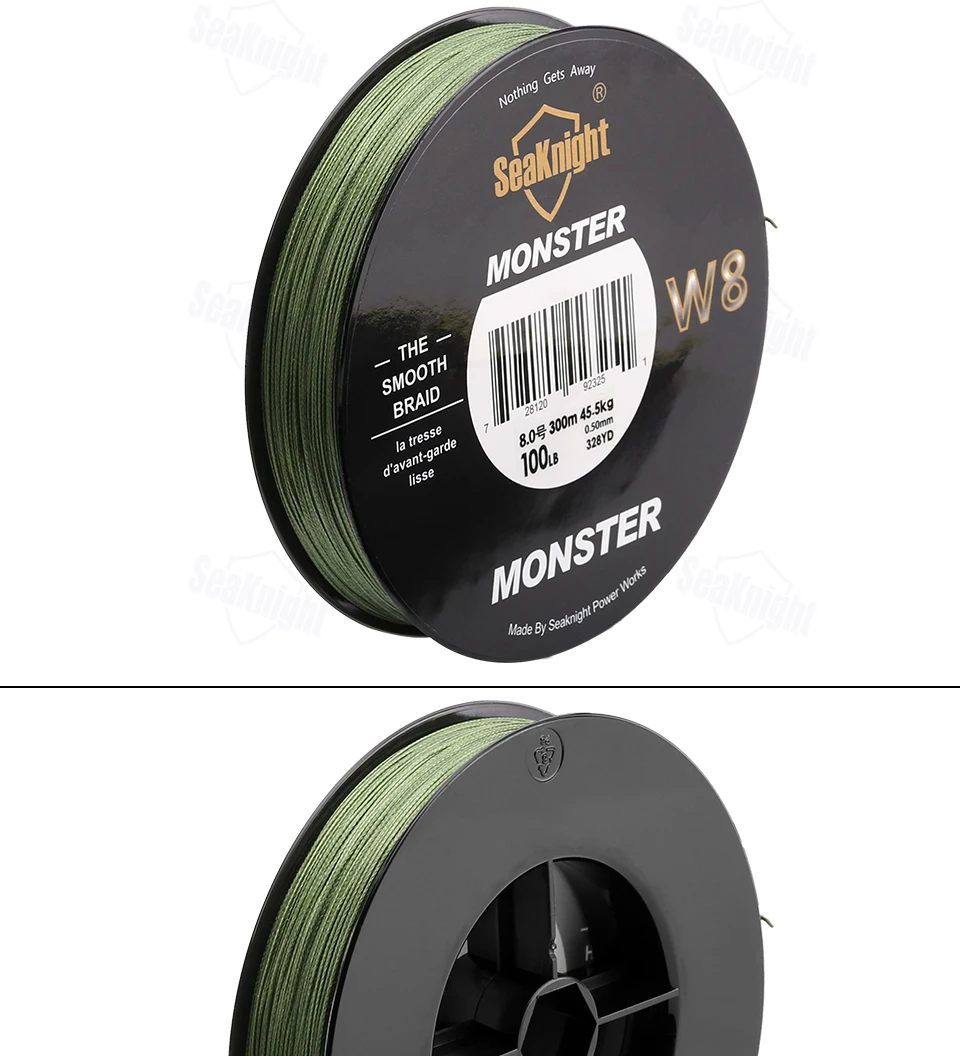 SeaKnight MONSTER W8 300M 500M Braided Fishing Line 8 Strands MultiColor Multifilament Saltwater PE Line 20 30 40 80 100LB