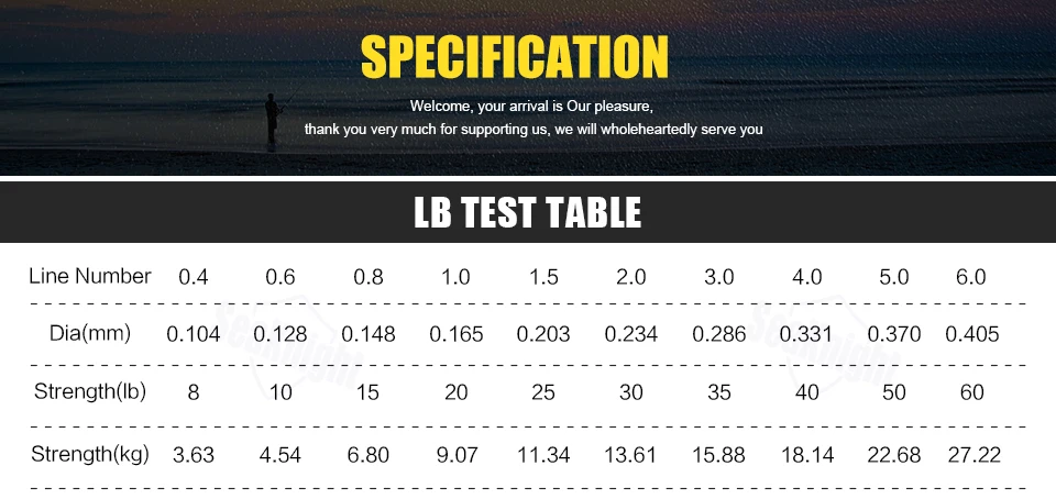 | Weaves | 4 (3 for 8LB) PE Braided Fishing Line |