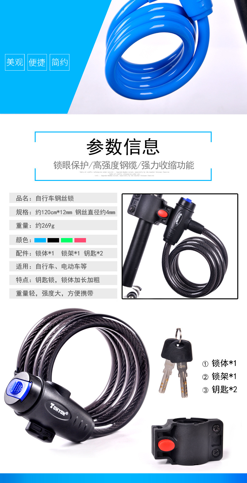 TONYON universal wire lock/tonyon lock bicycle lock mountain bike bicycle lock TY588 bar lock