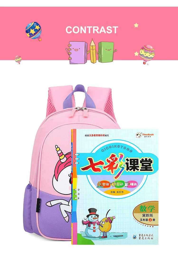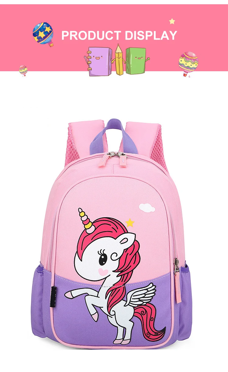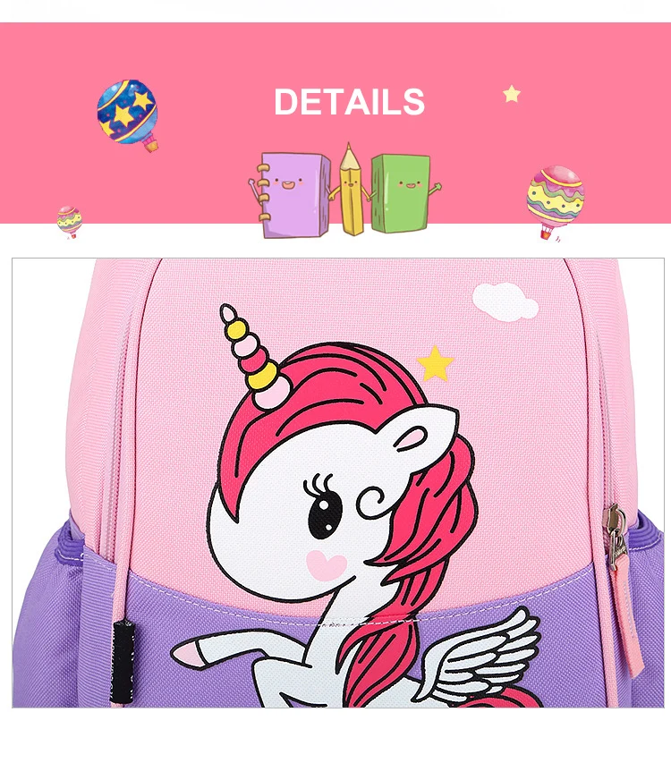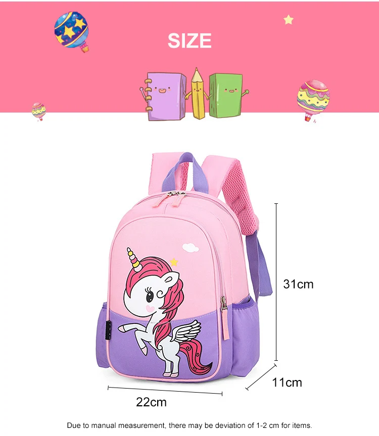 High Quality Nylon Kids School Bags for 2-6 Years Old Toddler Cute Cartoon Unicorn Children School Backpacks for Boys Girls