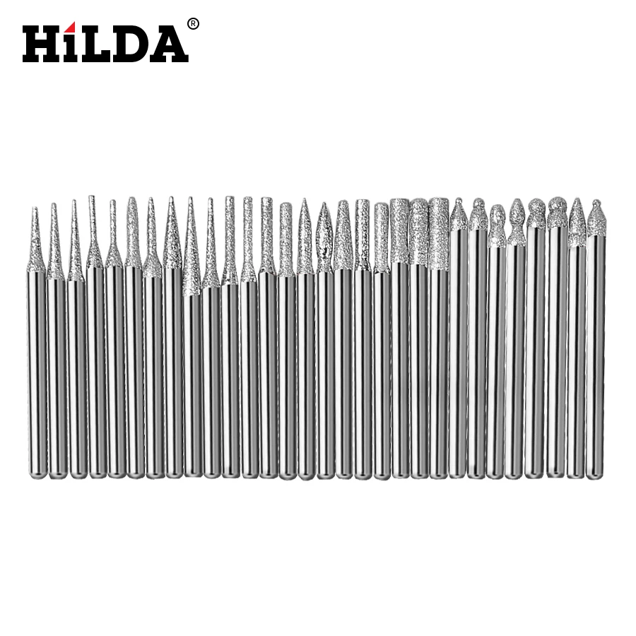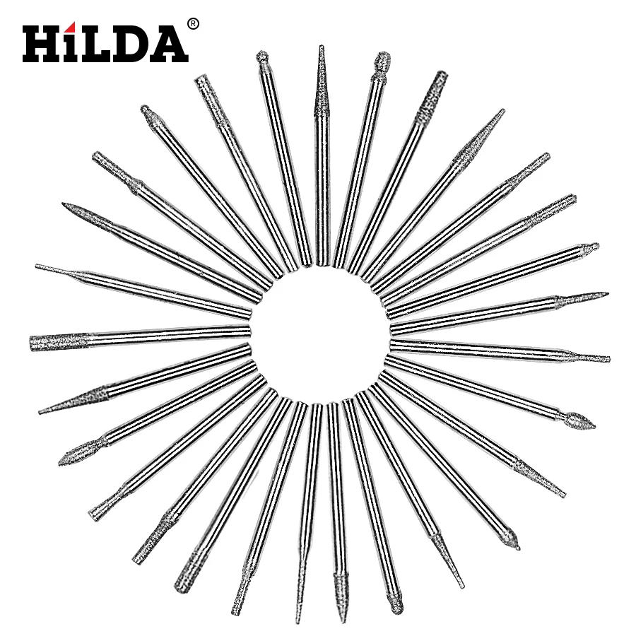 HILDA 30pcs Diamond Burr Bits Set For Dremel Rotary Tools 1/8″ 150 Grit Dremel Accessories For For Engraving Carving Tools