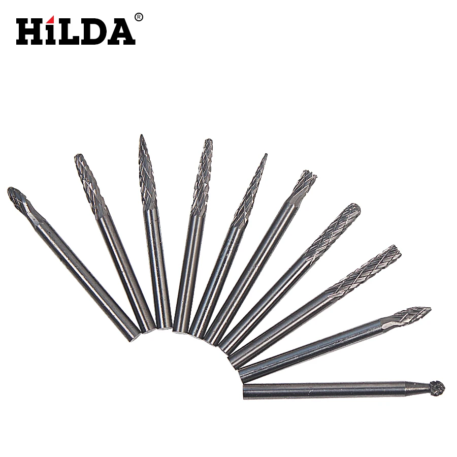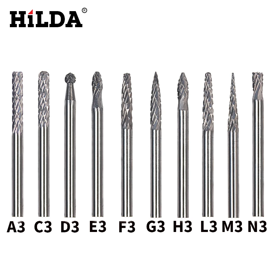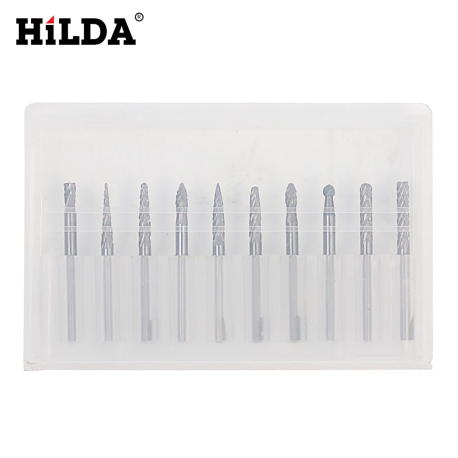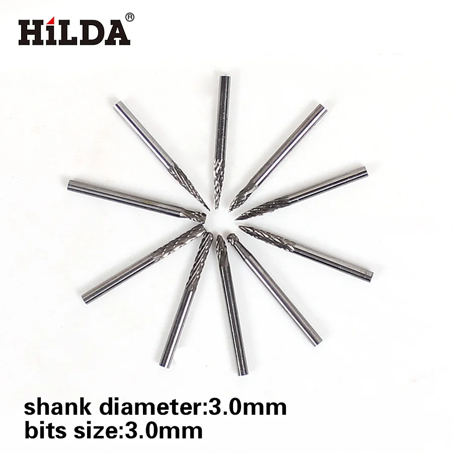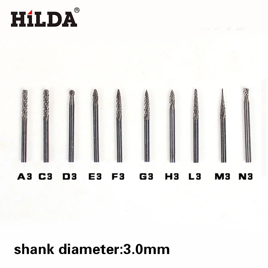 HILDA 3mm (1/8″) Tungsten Carbide Burr 3mm Rotary Cutter Files Set CNC Engraving CED Cutting Edge Diameter 3mm 10Pcs/set