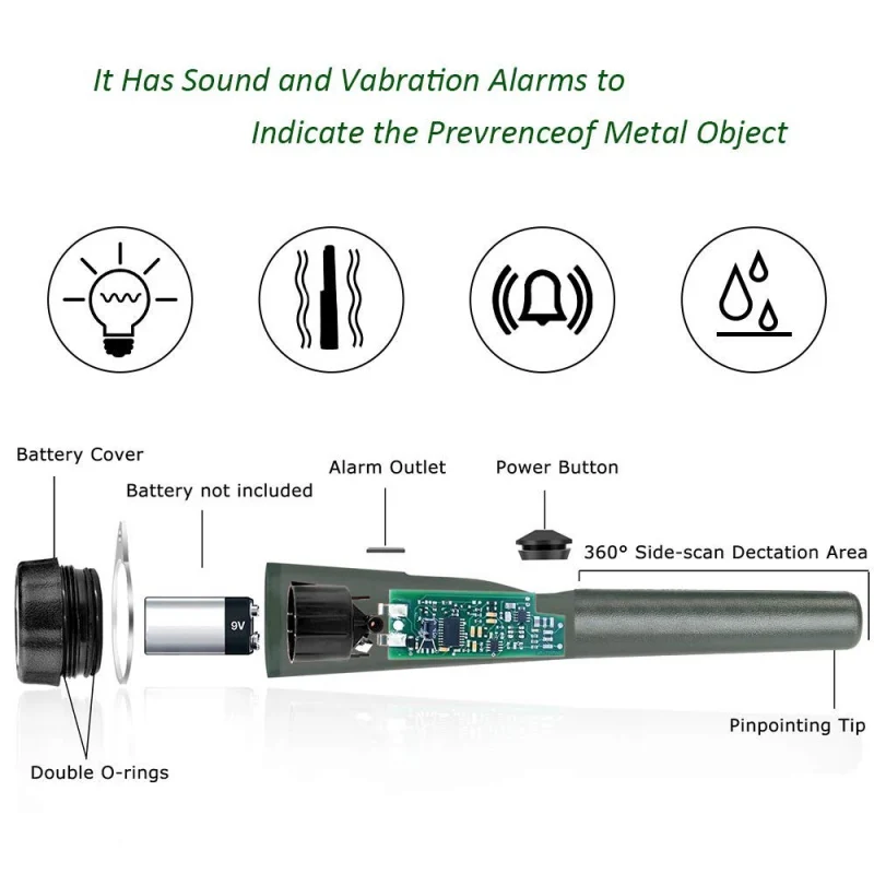 The pinpointer metal detector with a 360°detecting probe can target the object rapidly and accurately, saves you lots of time finding specific locations of objects.