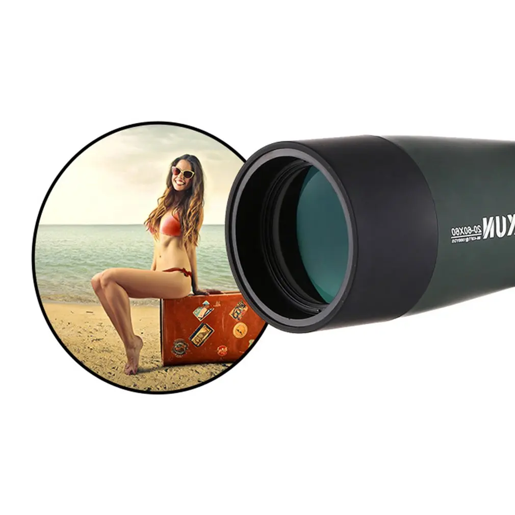 The spotting scope comes with sunshade,which can easy slip off to reduce glaring and shields the objective lens from raindrops or other harsh environment condition.