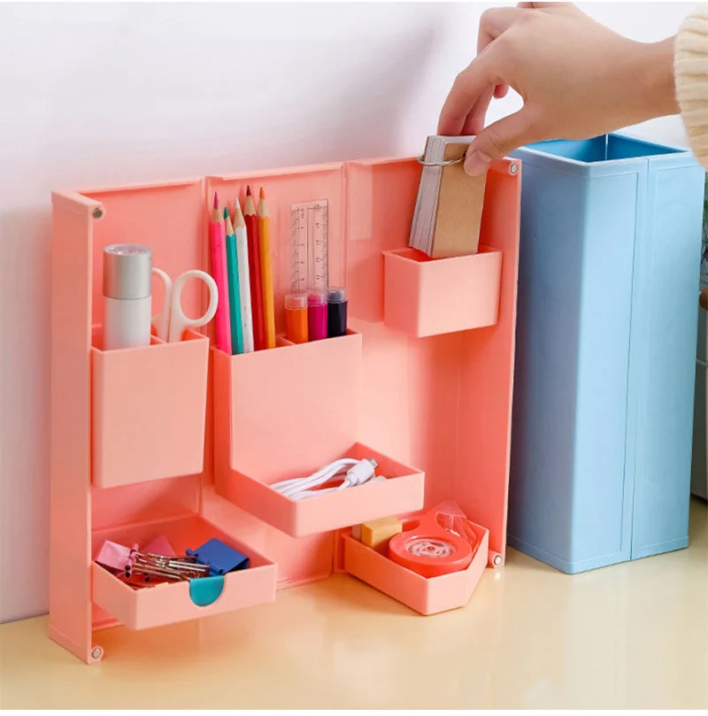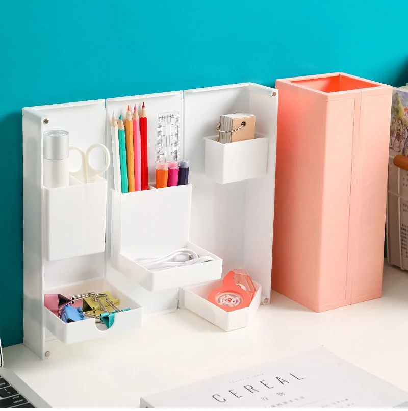 Foldable Vertical Pen Holder Desk Organizer Stationery Office Storage Bucket