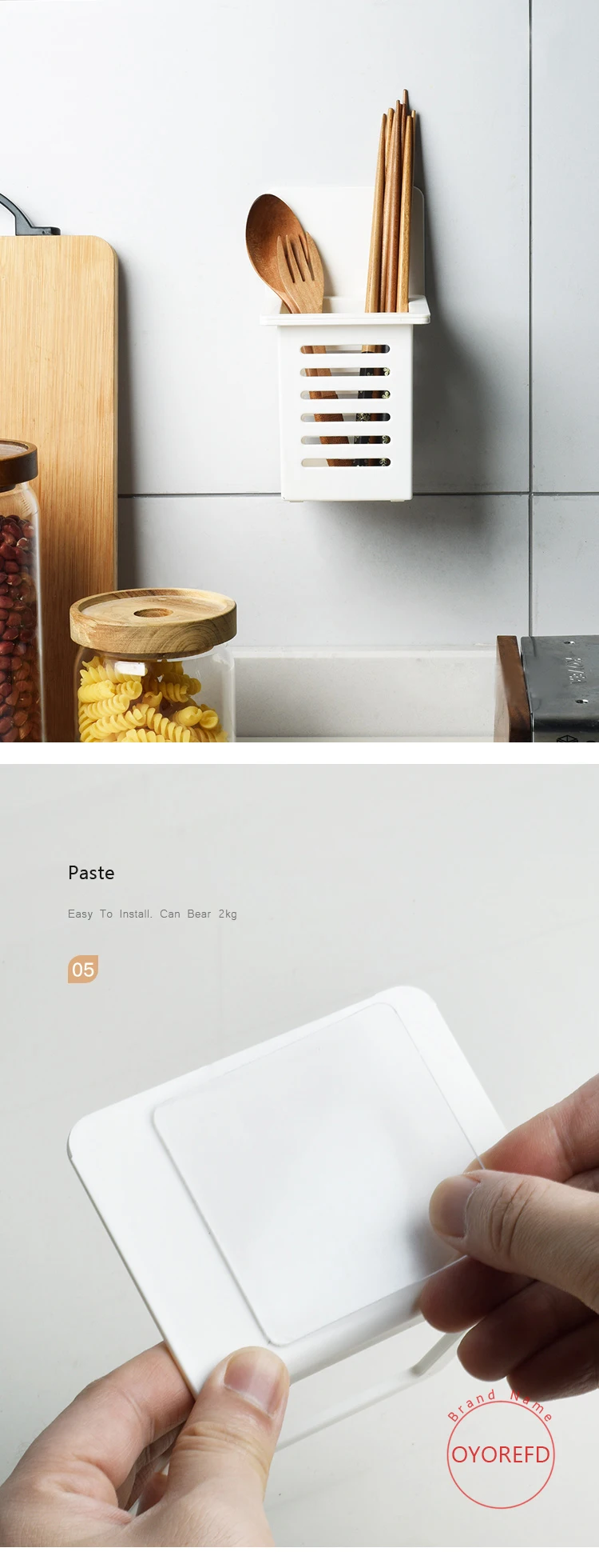 Wall Mounted Japanese Style Tableware Holder Kitchen Chopsticks Fork Spoon Drain Drying Rack Kitchen Cutlery Organizer